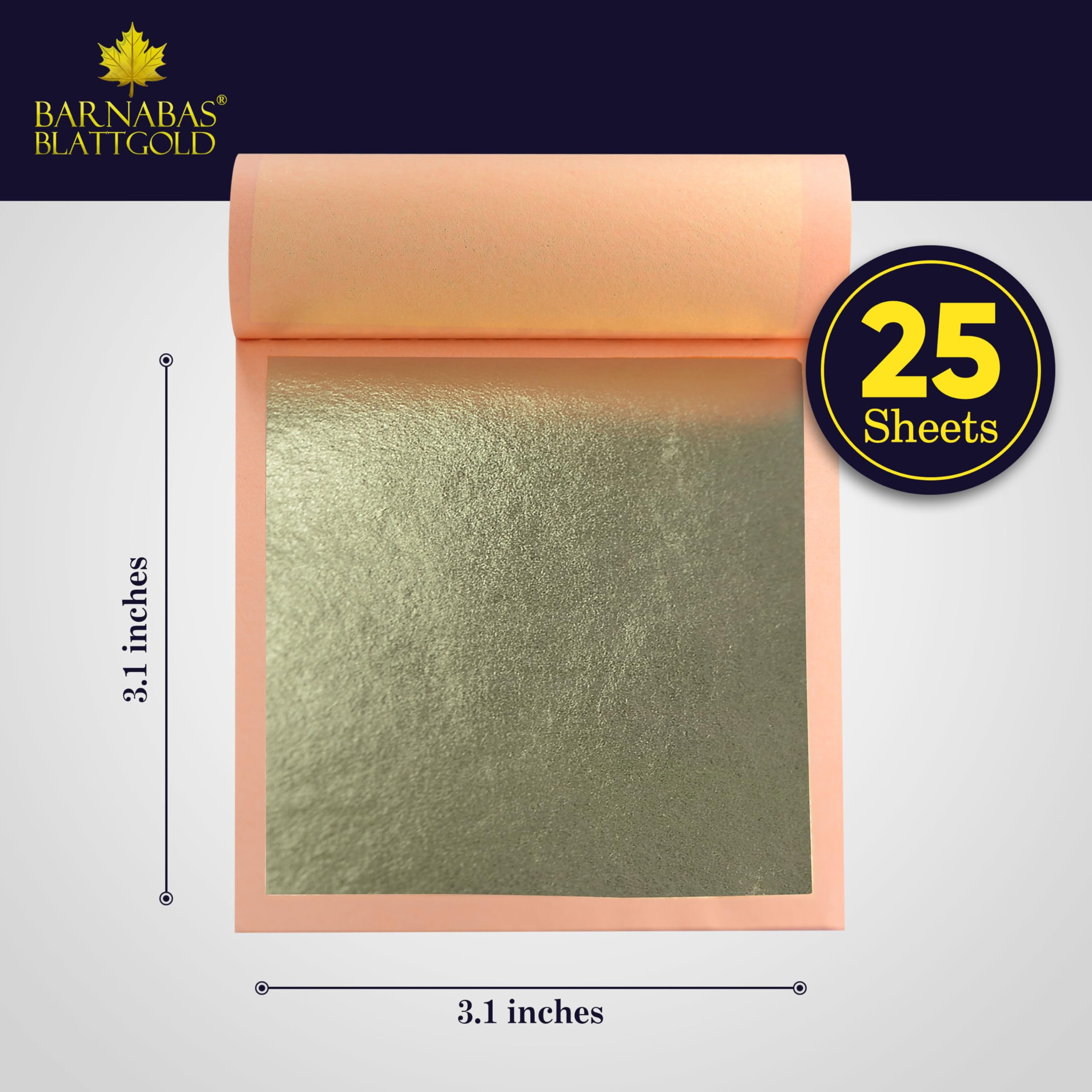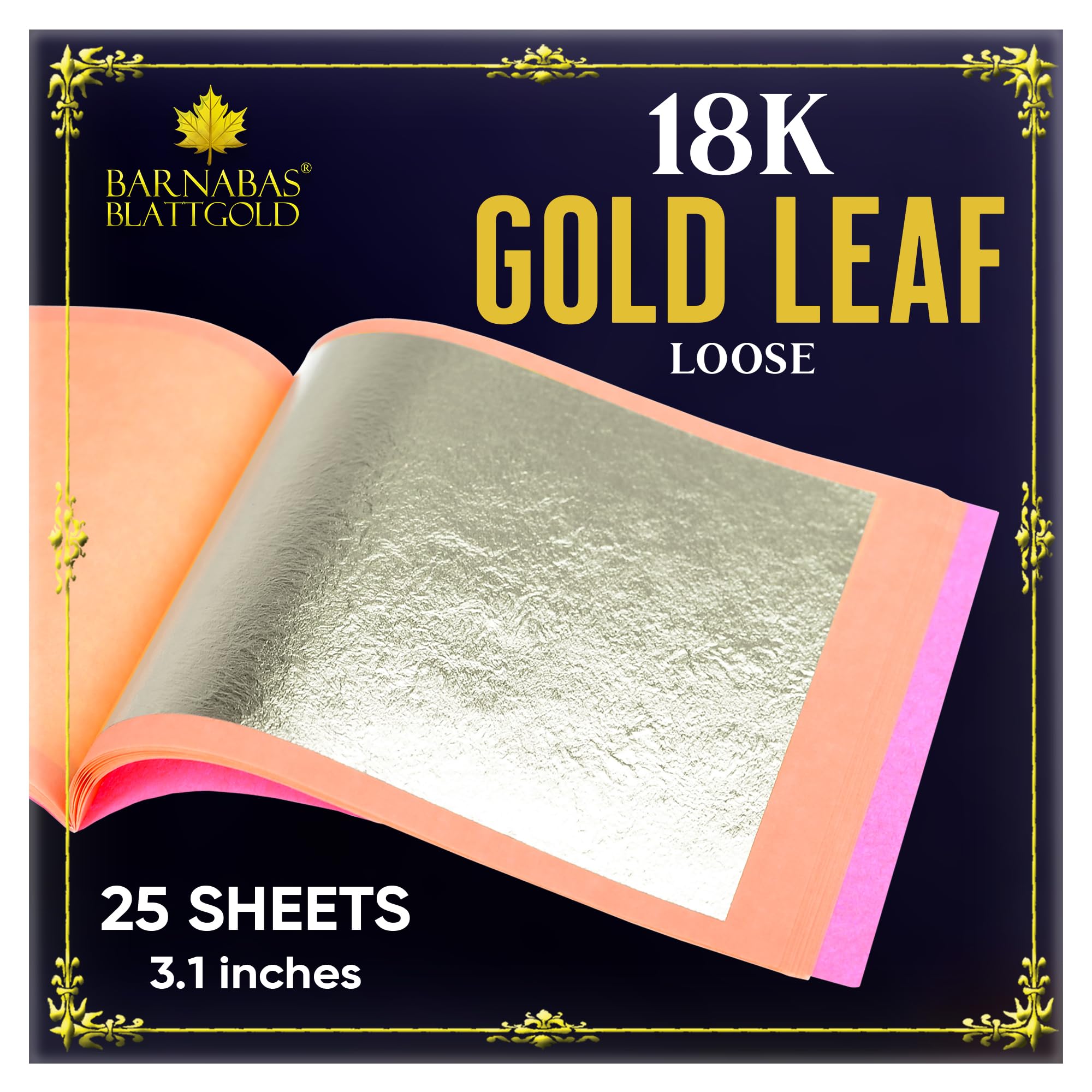 Professional Grade Leaf: There are 25 sheets of genuine 18k gold leaf in a pack, measuring 3 1/8 x 3 1/8-inch per sheet. 25 sheets covers approx 1.7 sq of flat area.