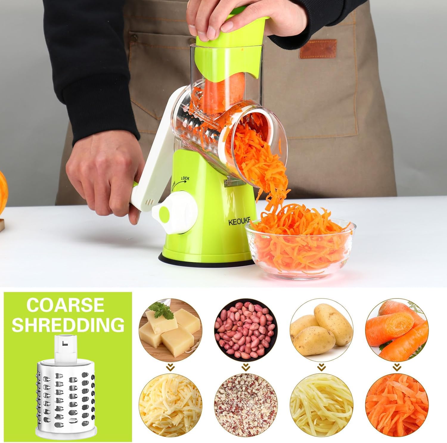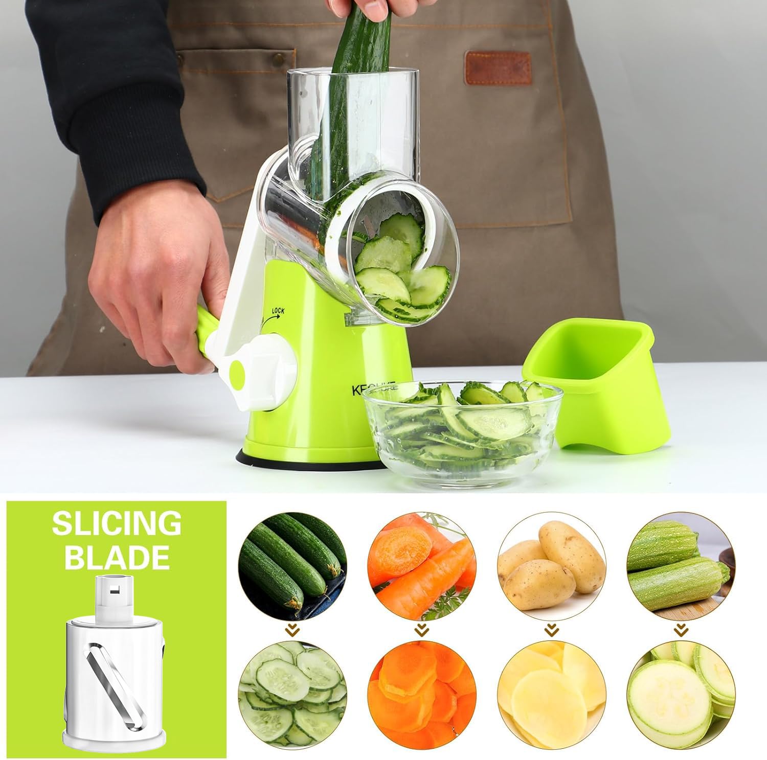 Three Blades: Coarse shredding blade, fine shredding blade with different diameter ; One slicing blades; A pound of cheese is only 30 seconds, avoid contact between fingers and blades
