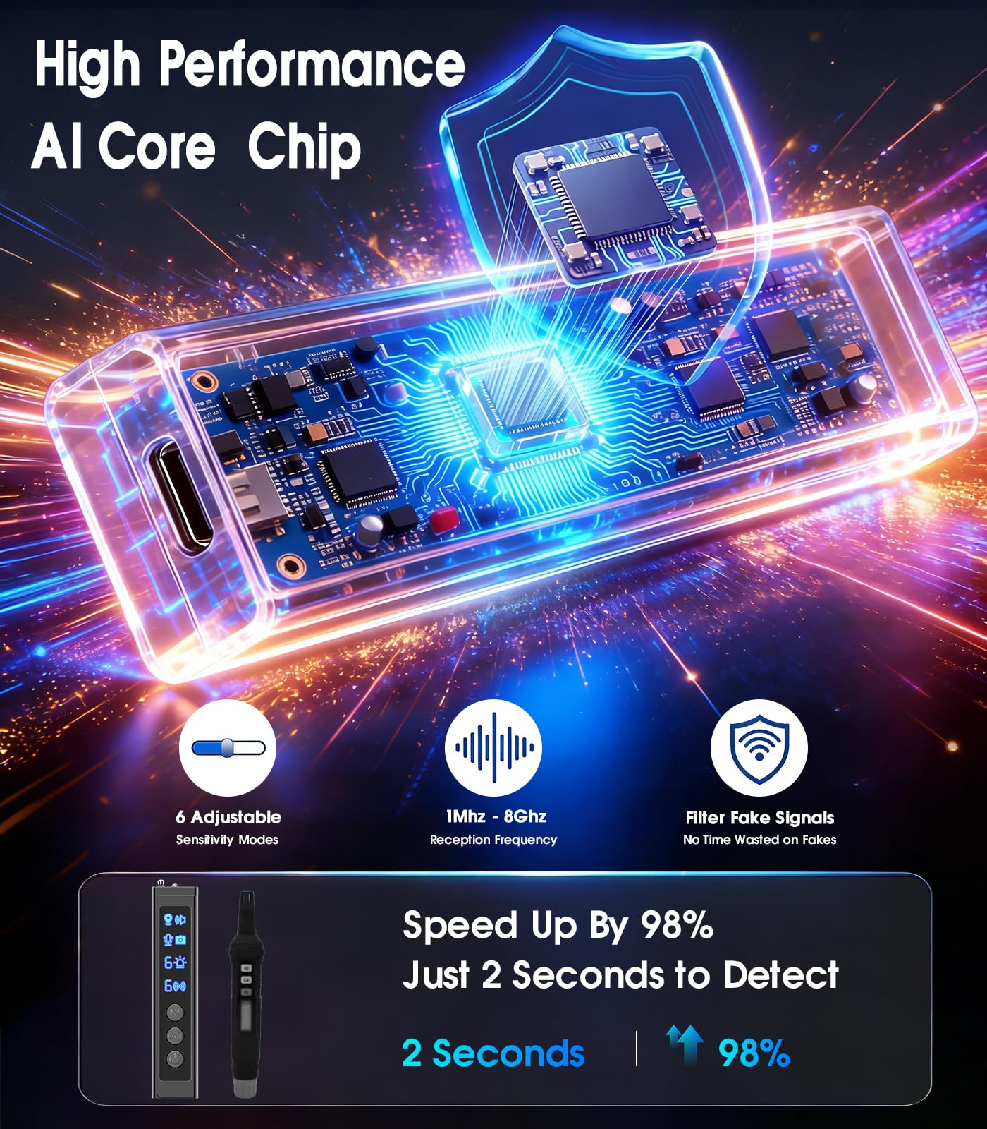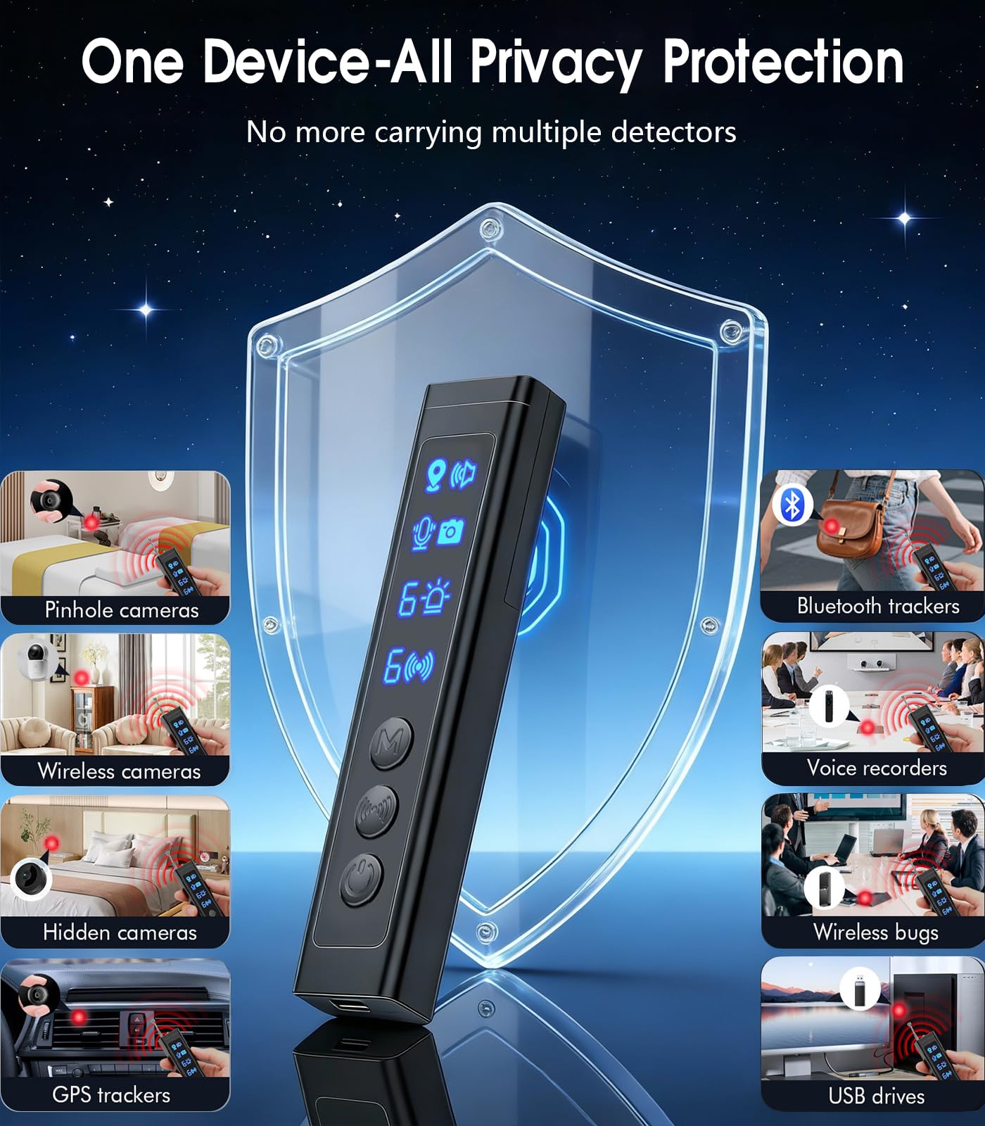 Advanced AI Hidden Camera Detector: Uses upgraded AI technology to detect hidden cameras, listening devices, GPS trackers, and bugs with reliable performance. Provides peace of mind in hotels,offices, and your own home.