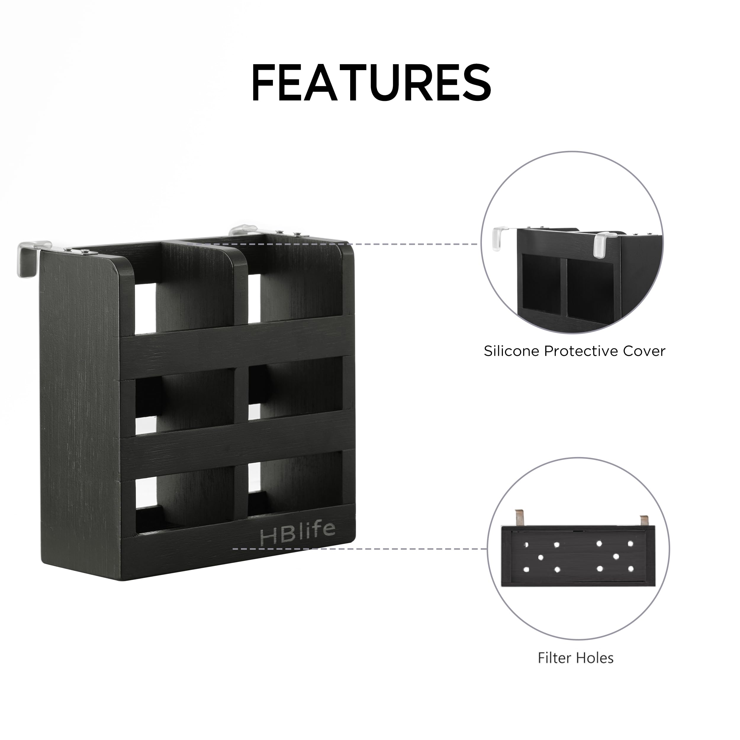 UTENSIL HOLDER- The 2-section utensil caddy can hold flatware and cooking utensils. It is convenient to hang from the wood dish rack with metal clips. Filter holes on the bottom drain the water effectively.