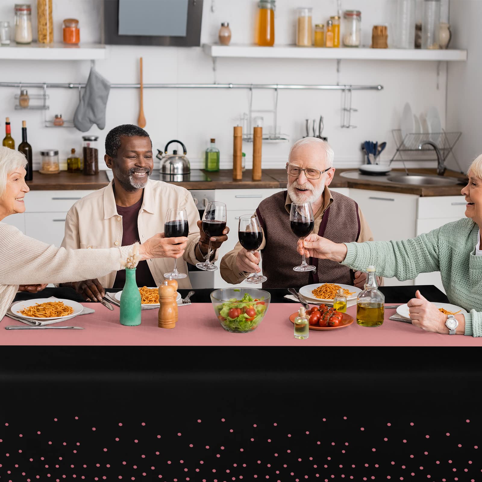 Classic design: the black and rose gold rectangle table cloth is designed with the black colors background and printed with rose gold foil polka dot,the table runner is made of satin, silky and smooth, thick and durable, which is not easy to wrinkle or deform, which can add more charms to your dinner table