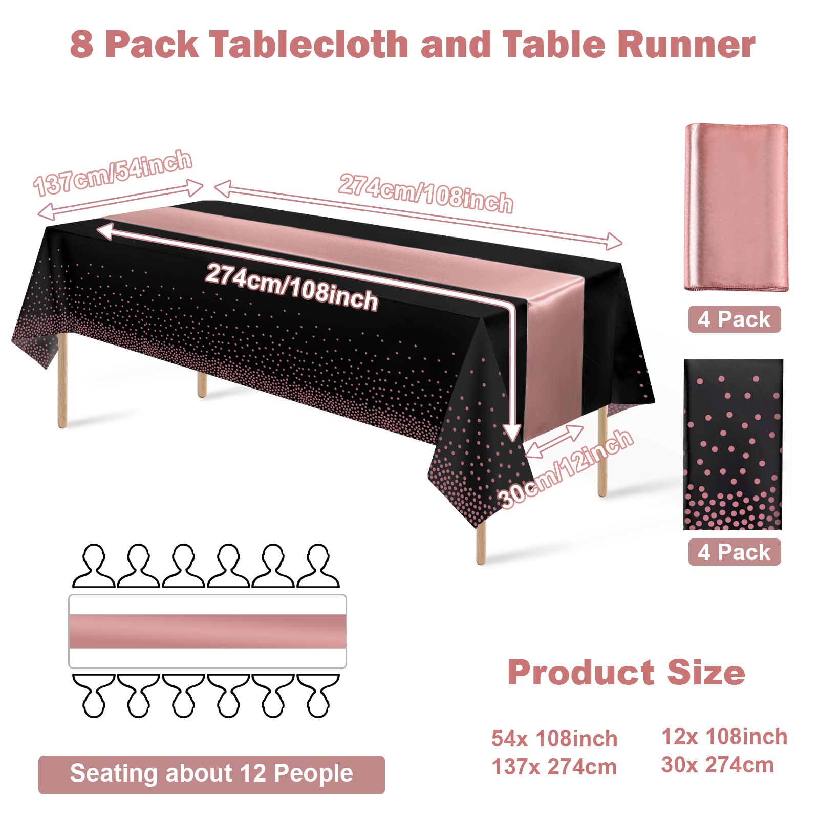 What you will get: the package includes 4 pcs black and rose gold confetti dot plastic tablecloth and 4 pcs rose gold satin table runner, specific color as the picture shown, nice combination for you to use in daily life or important occasions enhancing the atmosphere for your event.