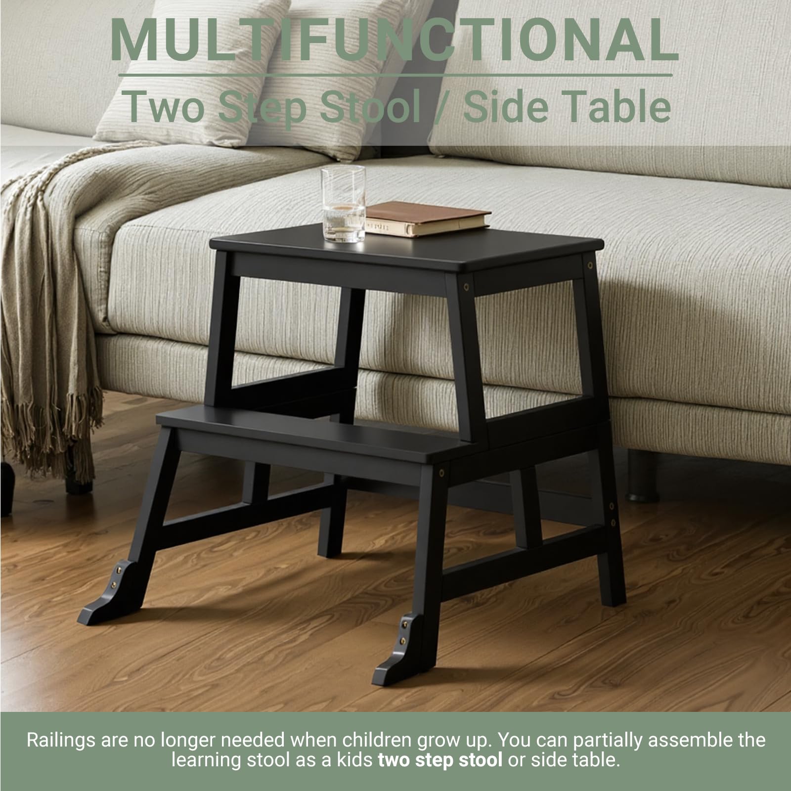 Strong and Versatile: Hand-selected sustainable material is sturdy and lighter than other woods, and has great natural coloring. It also functions as a little table/desk, and as steps that can take the weight of adults when needed