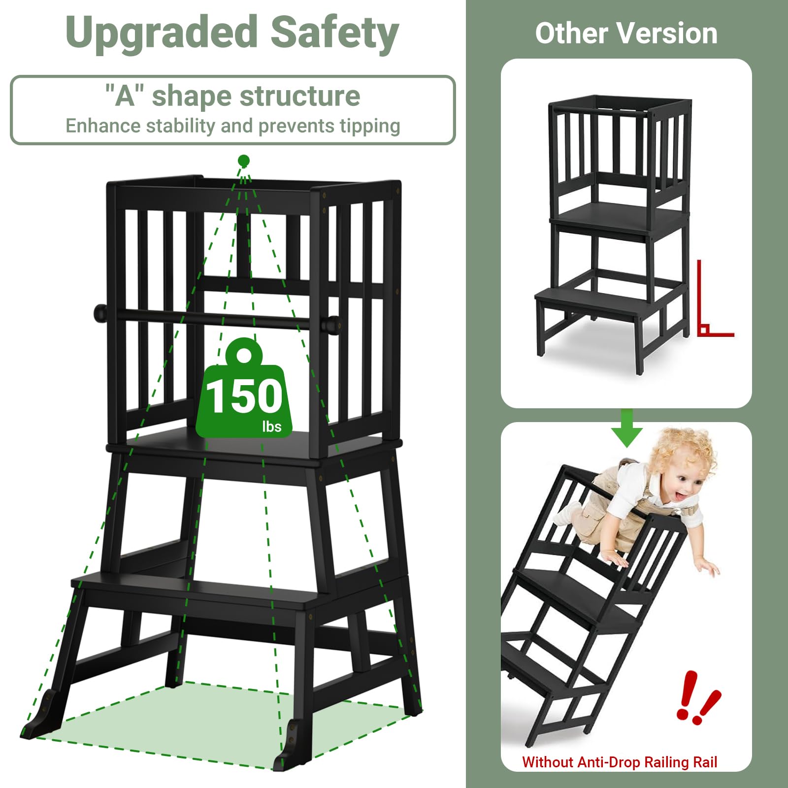 Made to Last: This sturdy tower stool for learning is made from solid natural material with a child-safe, meticulous finish that prevents scratches and scuff marks. Safely supports 150 lbs for toddlers 18 months to 3 years old