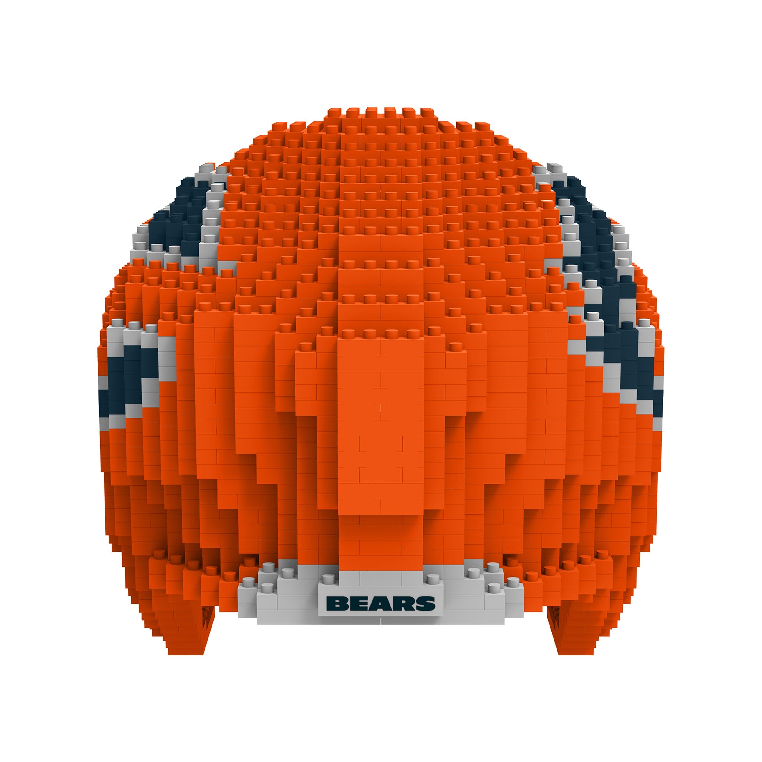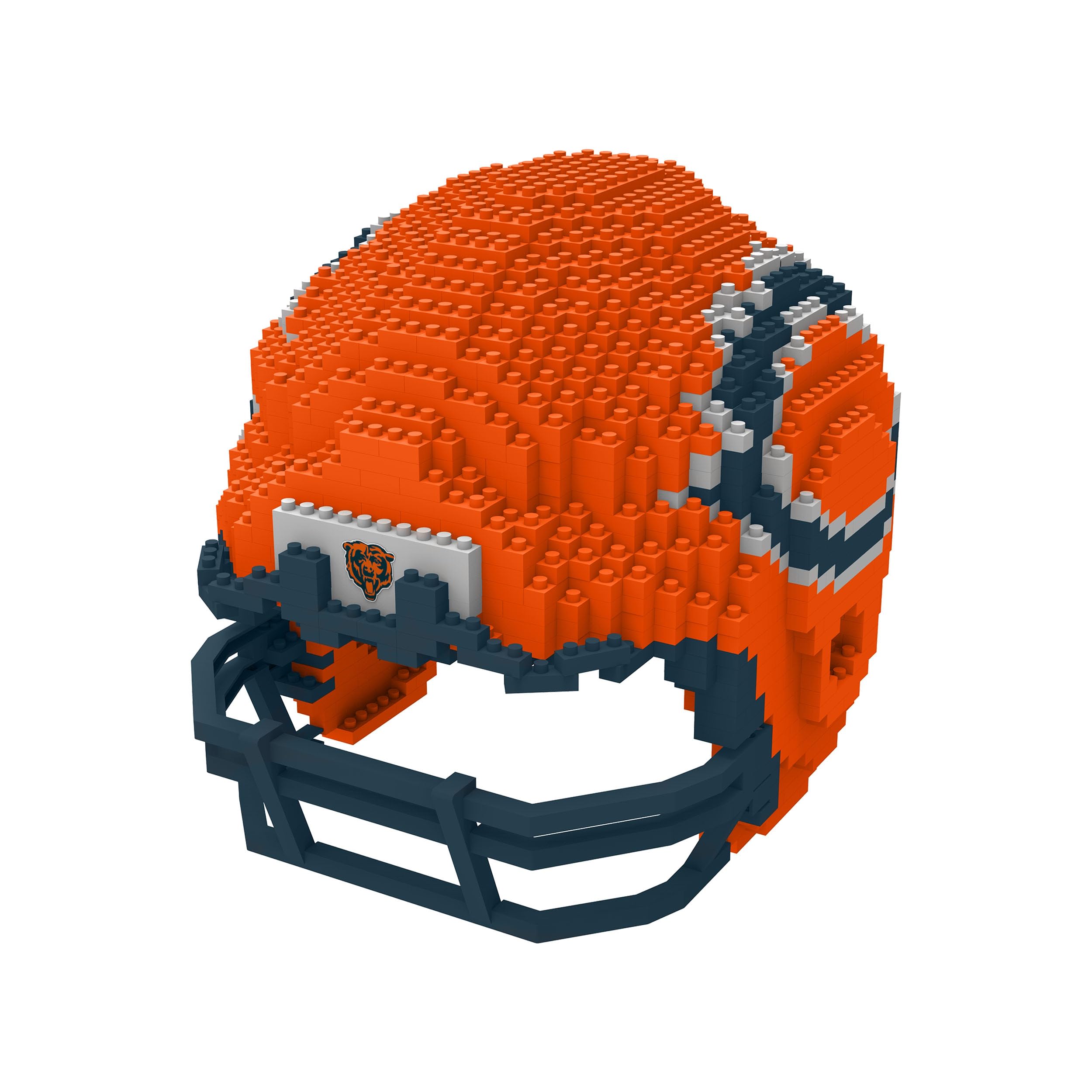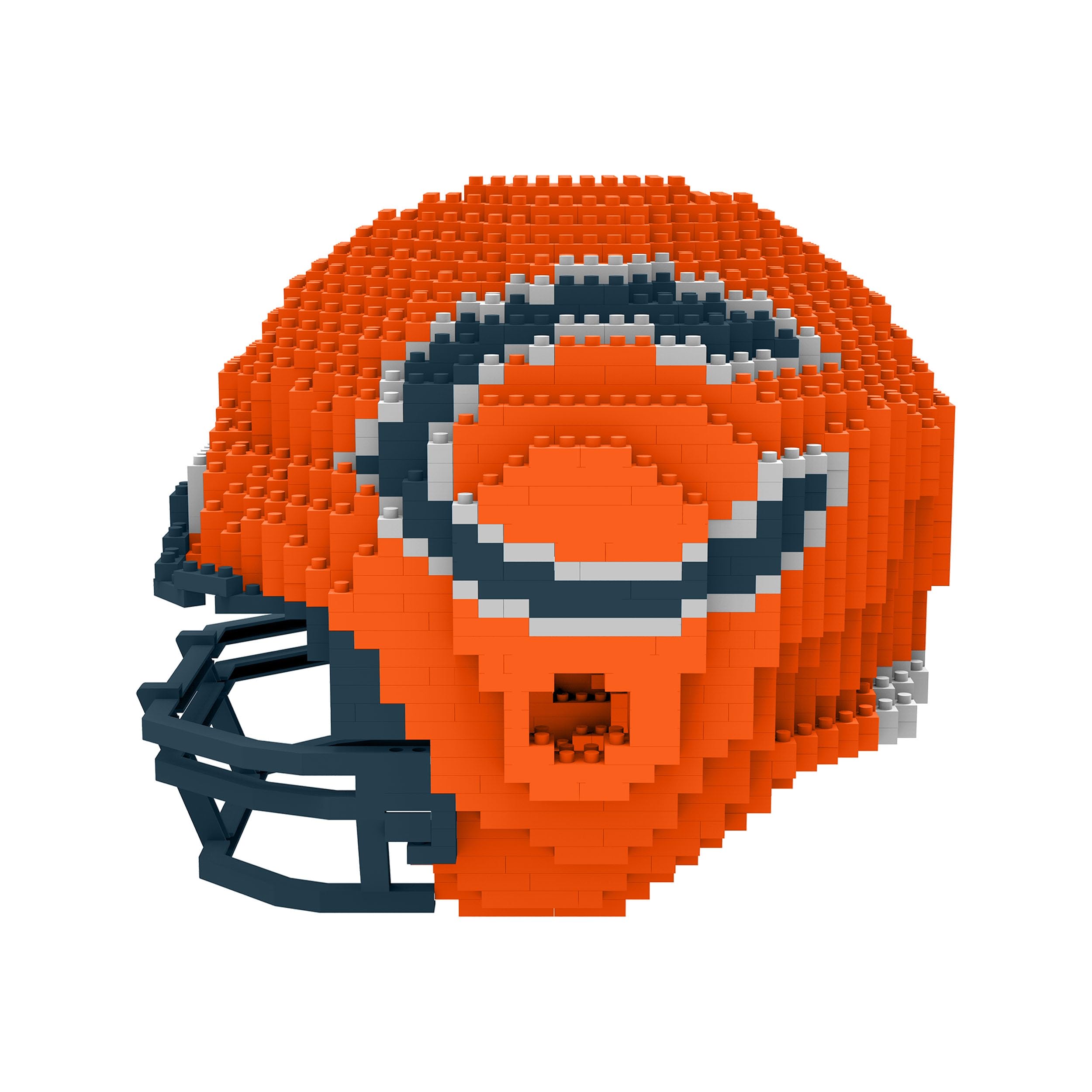 Construction toy that assembles into miniature team helmet. One-piece helmet grill for easy assembly