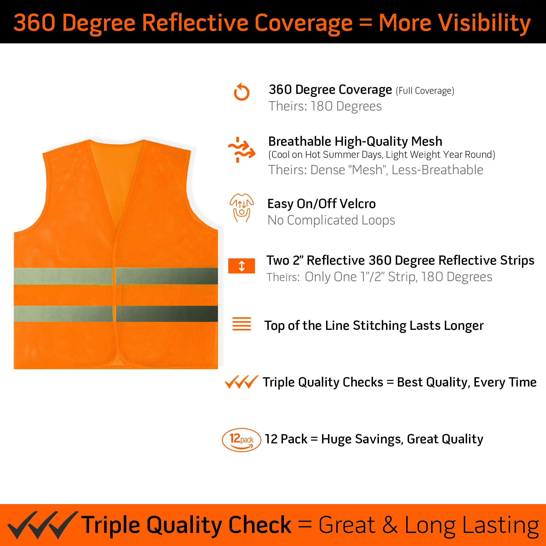 ✓ STAY SAFE WITH GREAT 360 DEGREE VISIBILITY - Fluorescent Yellow Safety Vest with high visibility reflective silver strips that wraps entire vest. Hi Vis in 360 degrees, front to back, side to side. These reflective high visibility strips work as great reflectors shining night or day. Keeping you visible to people, cars, and more!