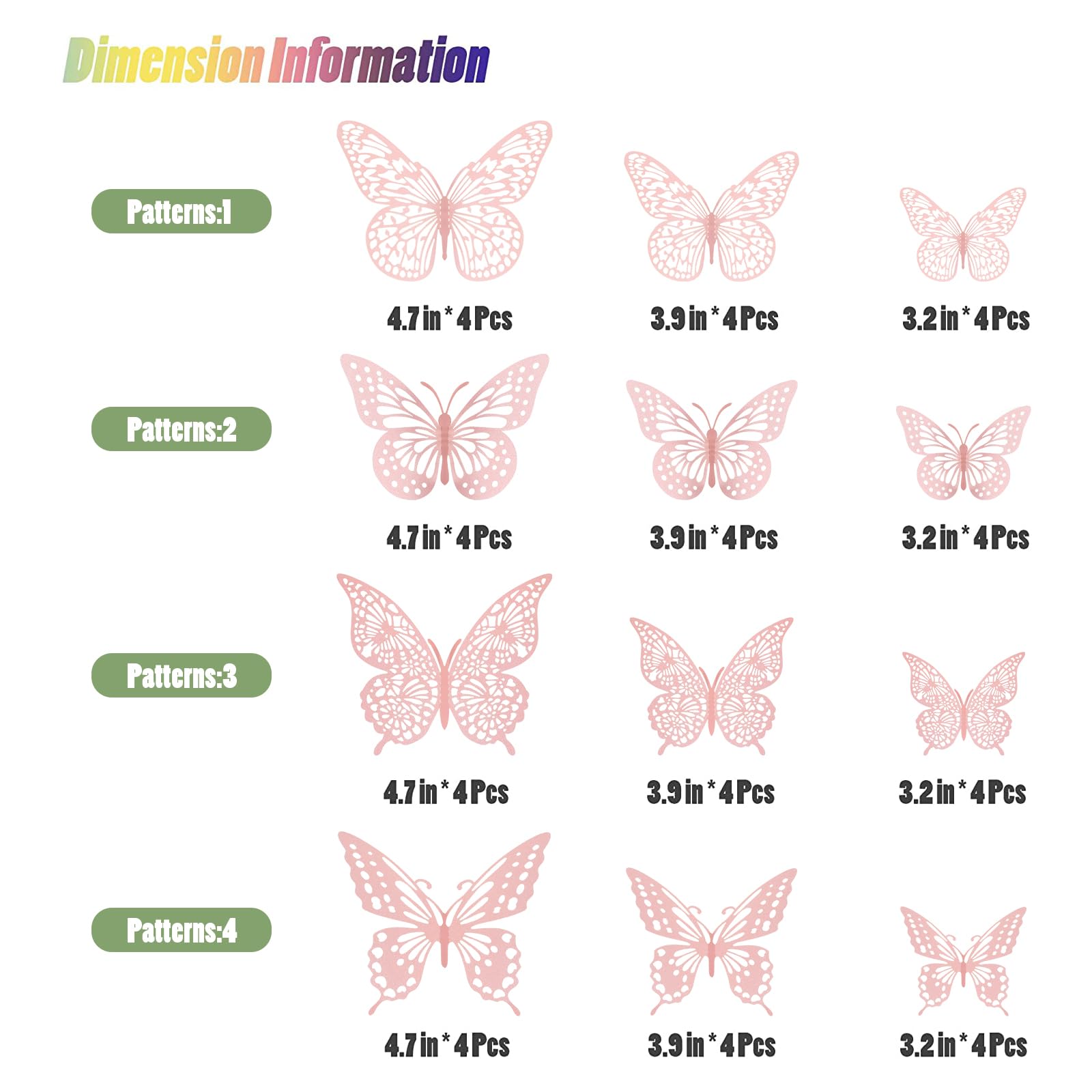 【Package Included】48 pcs butterflies: 12 pcs Style 1, 12 pcs Style 2, 12 pcs Style 3, 12 pcs Style 4, each style has 3 sizes(3", 4", 5"). Coming with 48 pcs double sided adhesive dots.