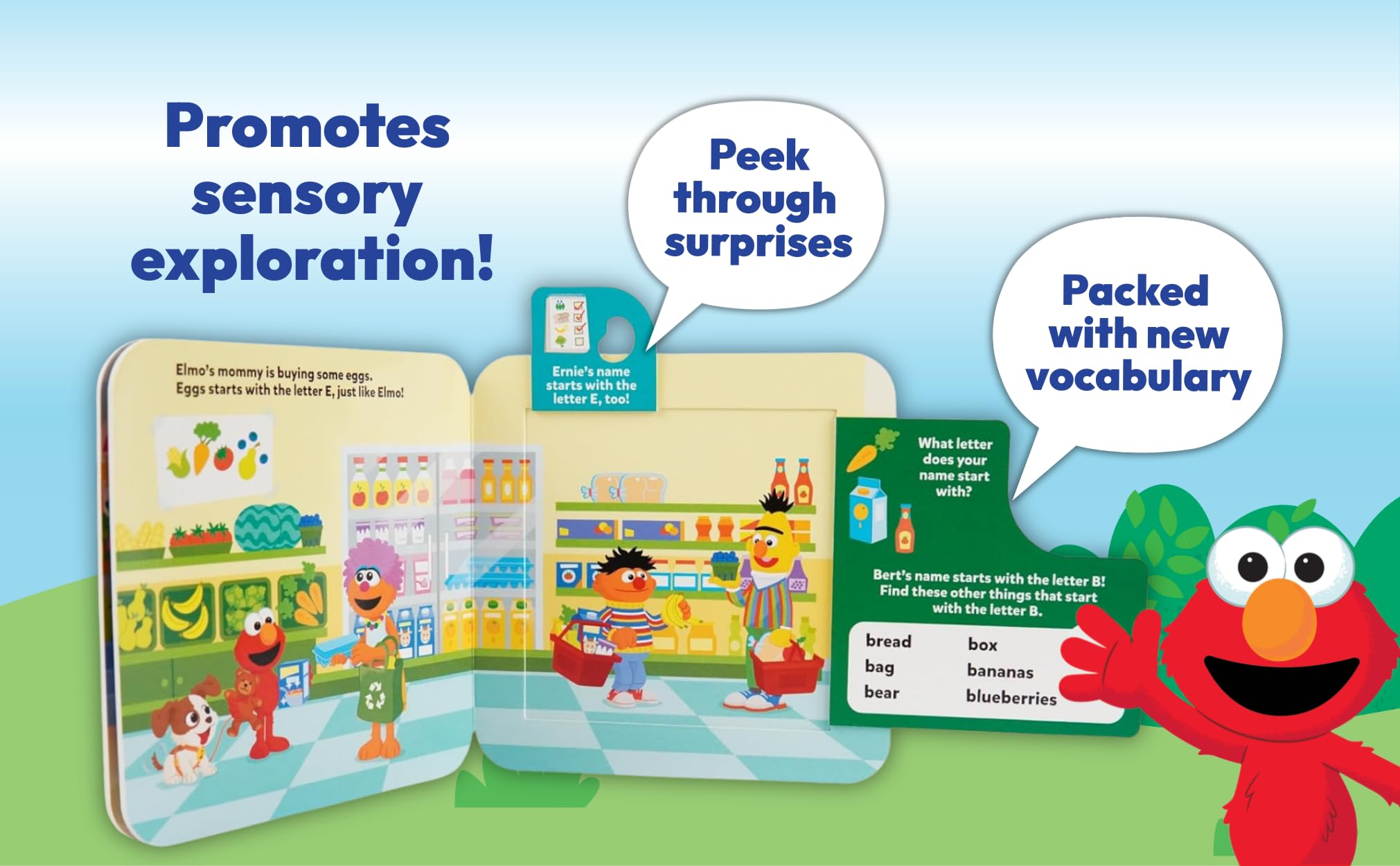 Join Elmo for an exciting day on Sesame Street as he visits Hooper’s Store, Cookie Monster’s Foodie Truck, the Community Garden, and more. Six colorful spreads feature Tango, Grover, Abby, and other favorite Sesame friends while reinforcing early learning concepts, like shapes, colors, and numbers. 12 sturdy flaps have peek-a-boo holes! Whether it’s your toddler’s first Elmo adventure or a gift for a growing Sesame Street fan, Peek-a-Flap Elmo is sure to become a storytime favorite! Look for other Sesame Street books from Cottage Door Press! Sturdy, thick board pages and reinforced flaps are built to withstand curious hands and repeated use Interactive flaps promote sensory exploration and help develop fine motor skills and hand-eye coordination Packed with new vocabulary and fun peek-a-boo surprises to keep little ones engaged Bright, cheerful illustrations and kid-friendly facts captivate babies, toddlers, and preschoolers A perfect gift for birthdays, holidays, or everyday learning fun—collect all the books in the Peek-a-Flap series!