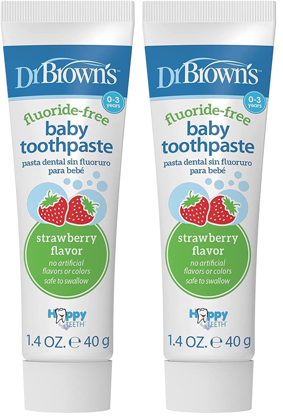 Dr. Brown’s Fluoride-Free Baby Toothpaste safely and effectively cleans baby’s teeth and gums with no fluoride, artificial flavors, or colors. This fluoride-free training toothpaste is the perfect first step for little ones to learn healthy oral hygiene habits, and the tasty flavors will make them want to brush! Start building the skills baby needs to learn independent brushing. Just add a pea-sized drop to a super-soft bristled toothbrush and use small circular motions to gently clean their teeth and gums. Contains xylitol, a natural sugar alcohol known for its dental benefits such as reducing the risk of tooth decay and gum disease, and reducing plaque formation. Free from fluoride, SLS, gluten, phthalates, or parabens. Always use with adult supervision. Keep away from dogs. 1.4oz/40g. 0-3 years.