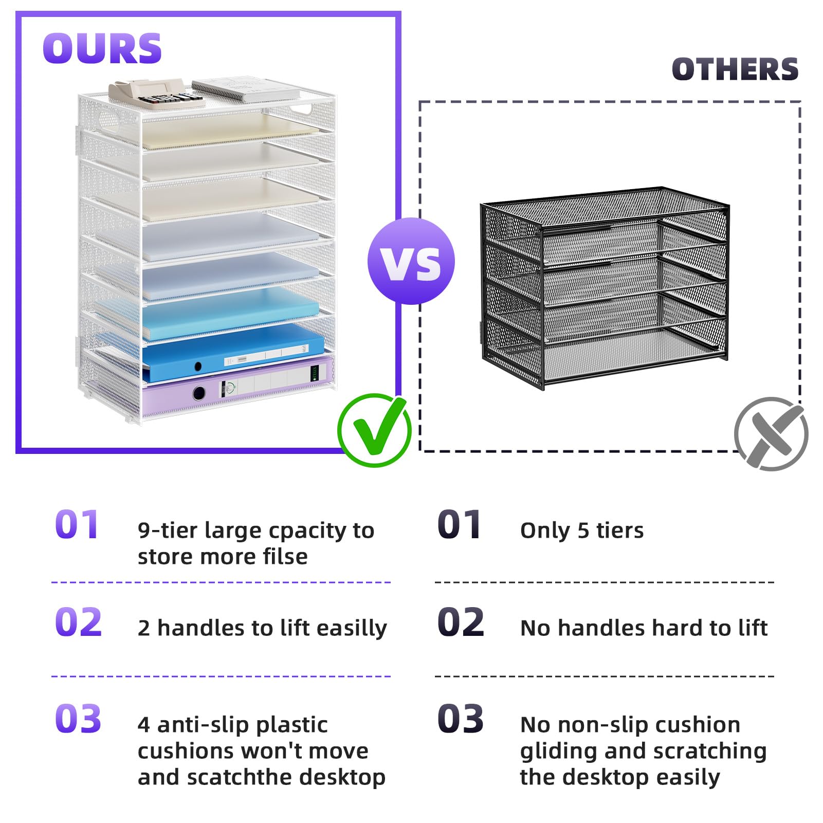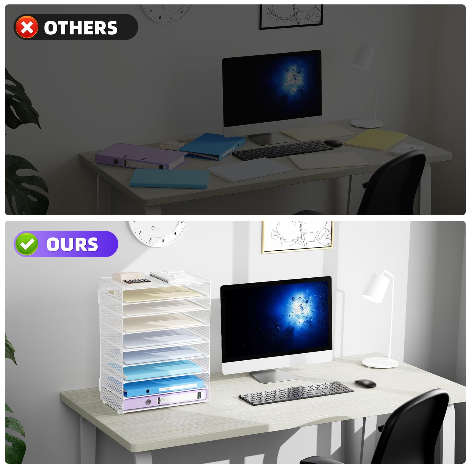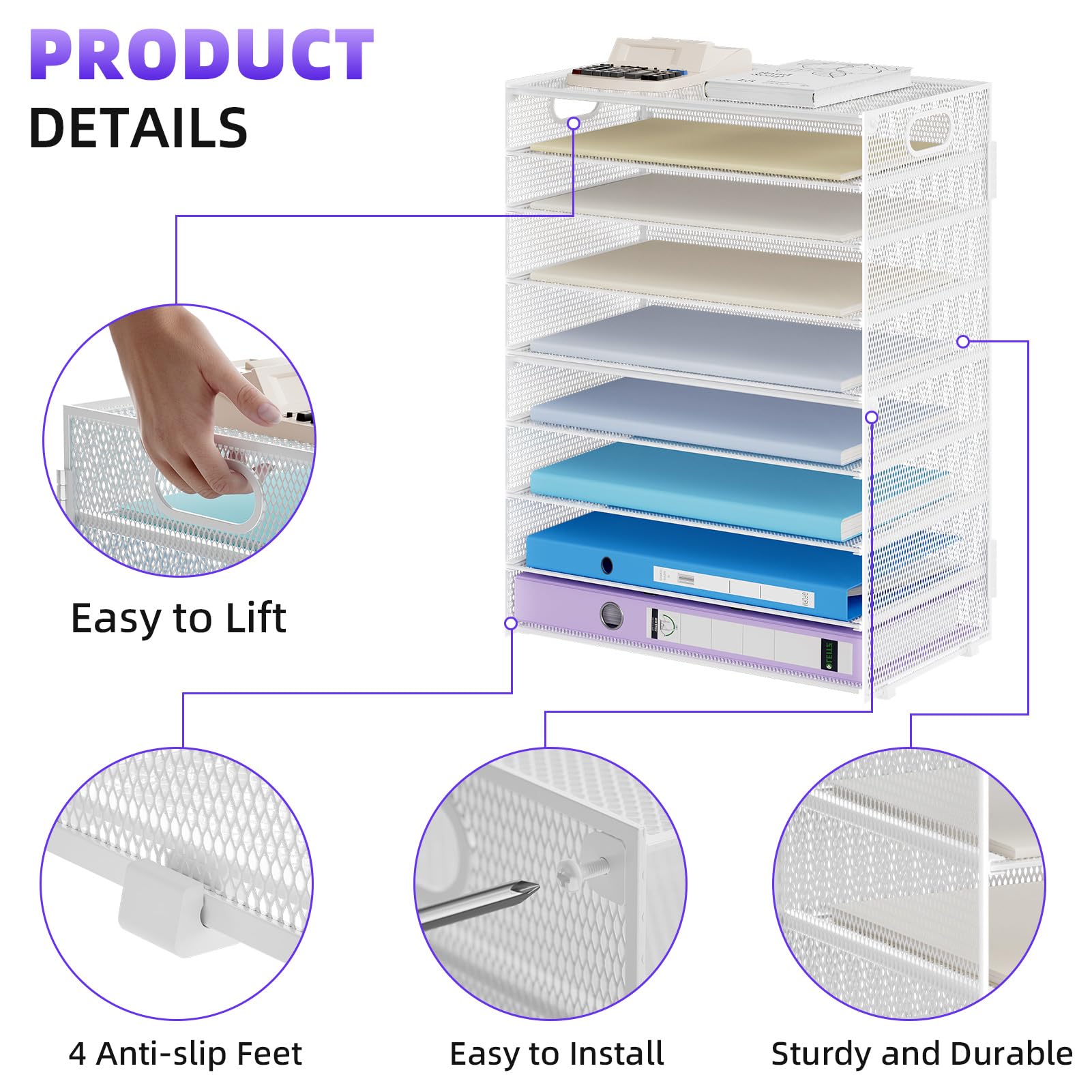【MULTI-PURPOSE ORGANIZER】5-tier layered design and large capacity make the paper organizer become an ideal choice for managing all kinds of letter-size letters, paper, books, bills, etc. Let you quickly identify the contents of each compartment super easy!