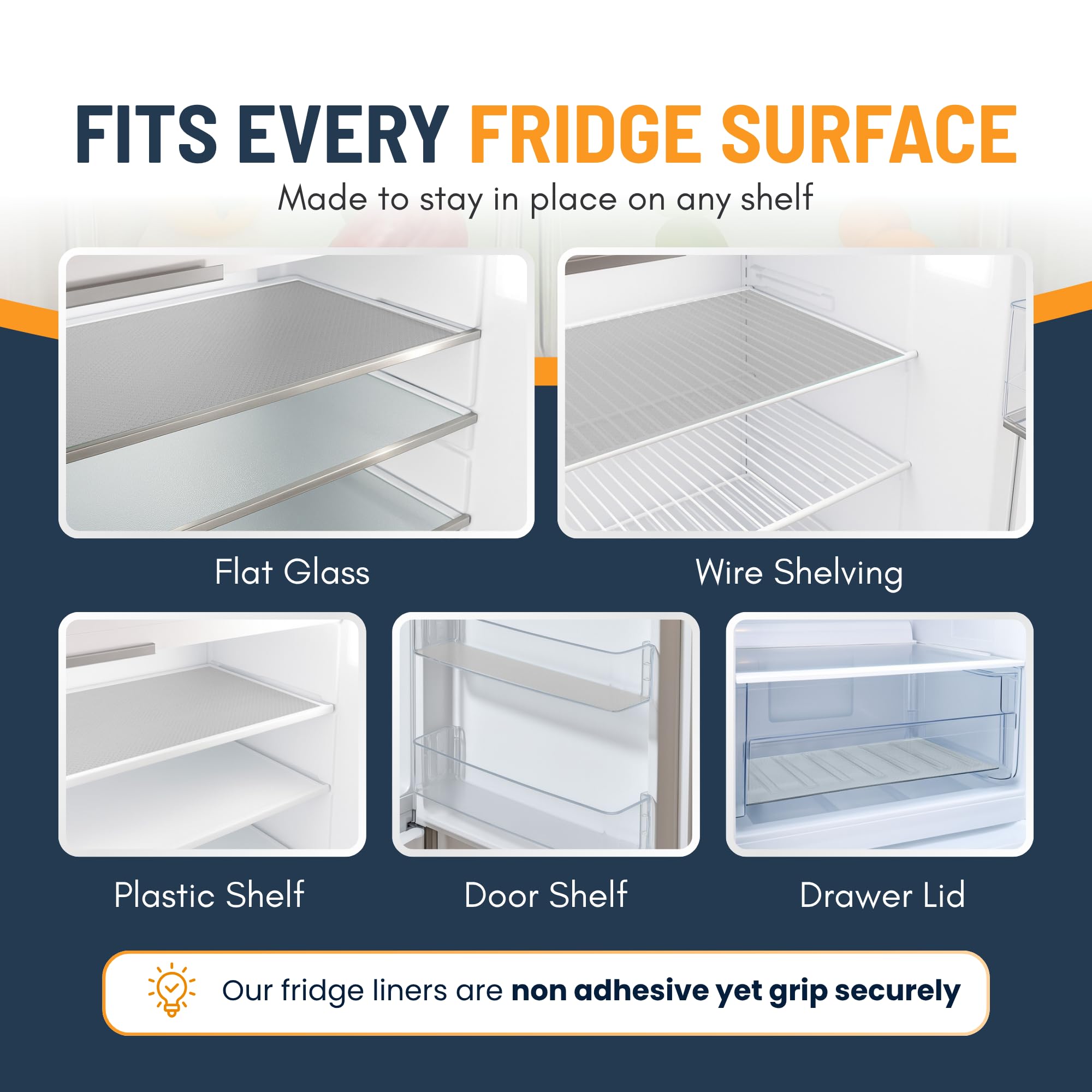 MULTIPLE USES: These liners can work as fridge shelf liners, drawer liners and cabinet drawer liners - the uses are endless. Our fridge organizer liners are a must have kitchen organization gadgets for homes and kitchen accessories. Simply cut to size using scissors to fit the liner mats anywhere in your house, as needed
