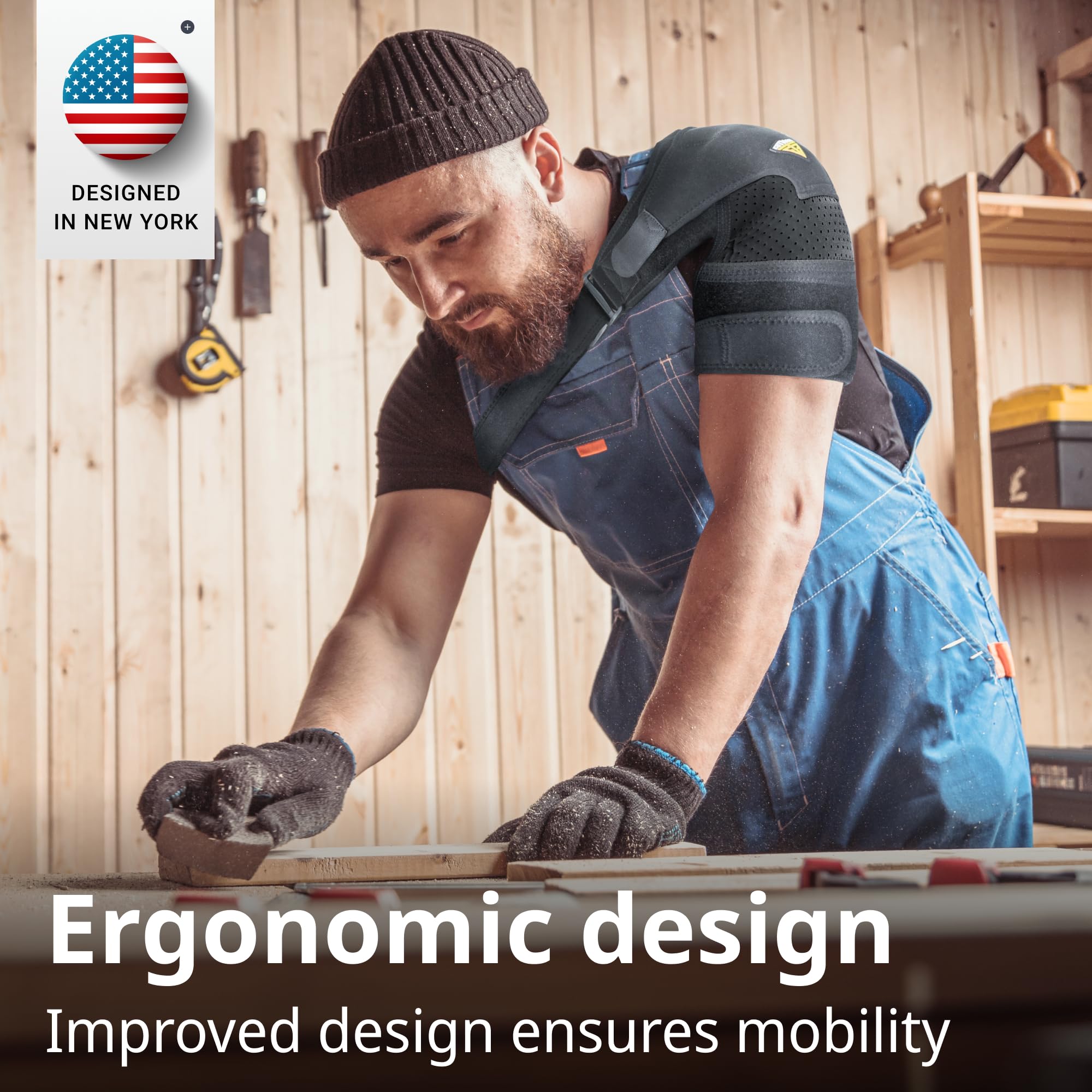 Universal Design Allows it to be worn on RIGHT or LEFT shoulder. Highly adjustable shoulder brace, unisex, comes in FOUR SIZES - fits most body types and shapes. For better effect, the brace can be combined with a shoulder sling (rotator cuff sling).