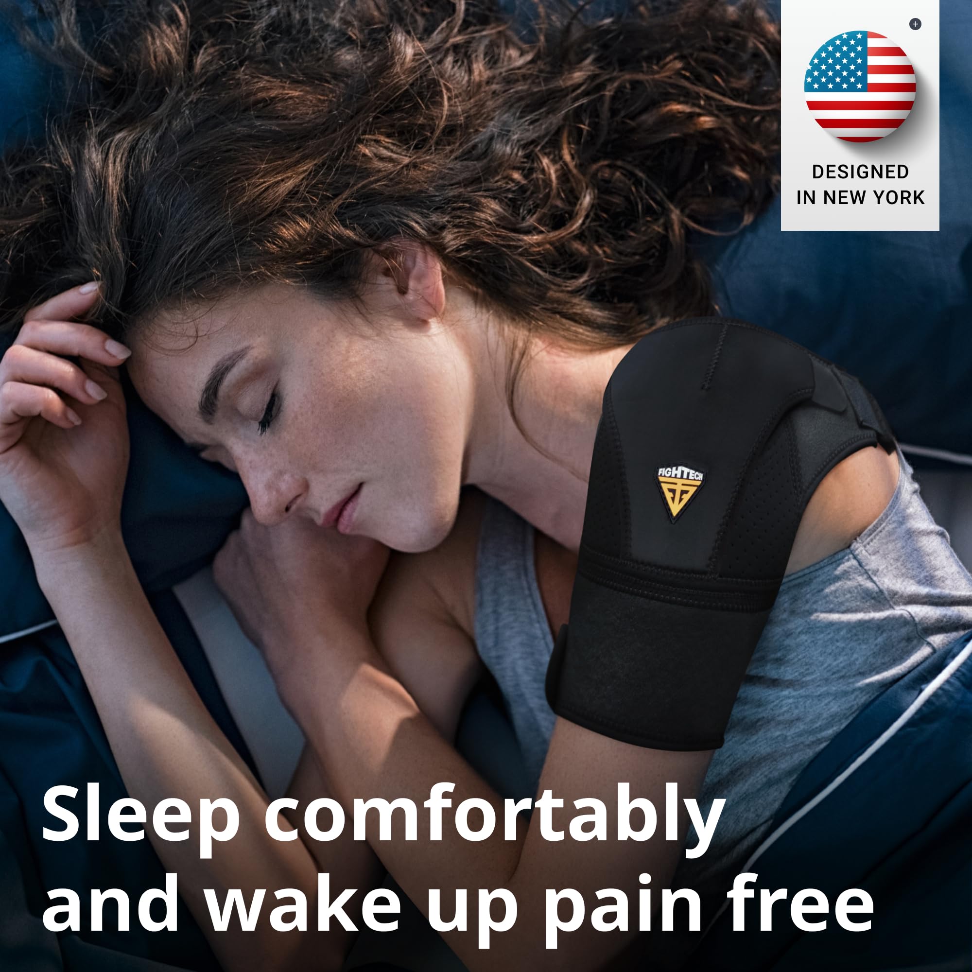 Fightech Shoulder Wrap was designed to stabilize your shoulder and put subtle pressure in the right spot, lessening the shooting pain. Our shoulder support brace is ideal for active users but can also be used to stabilize the movement while sleeping, as a reminder to not lift or carry heavy items with that arm, and of course, to ice your shoulder when in pain.