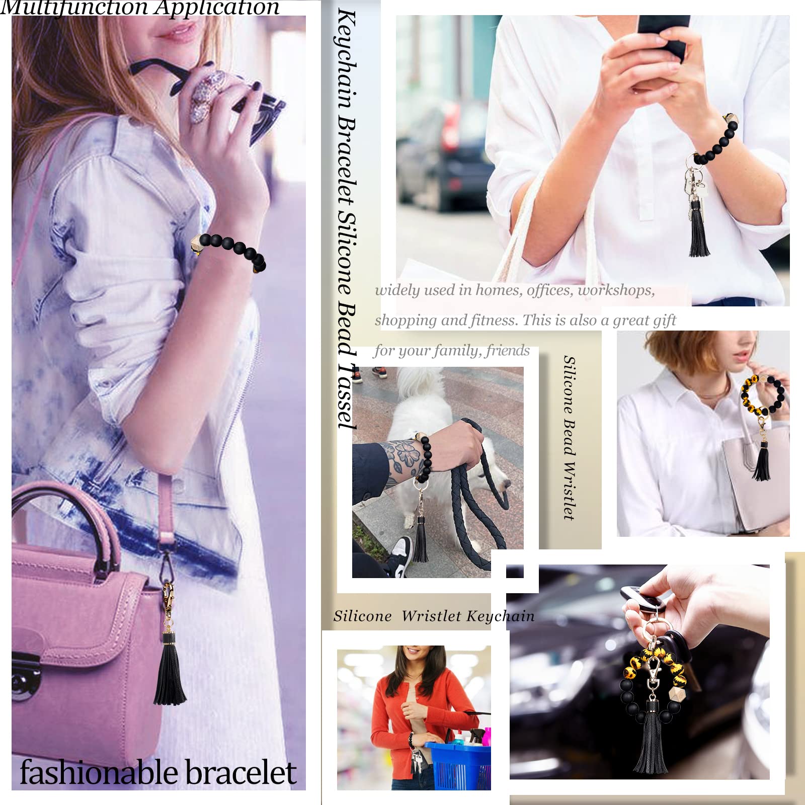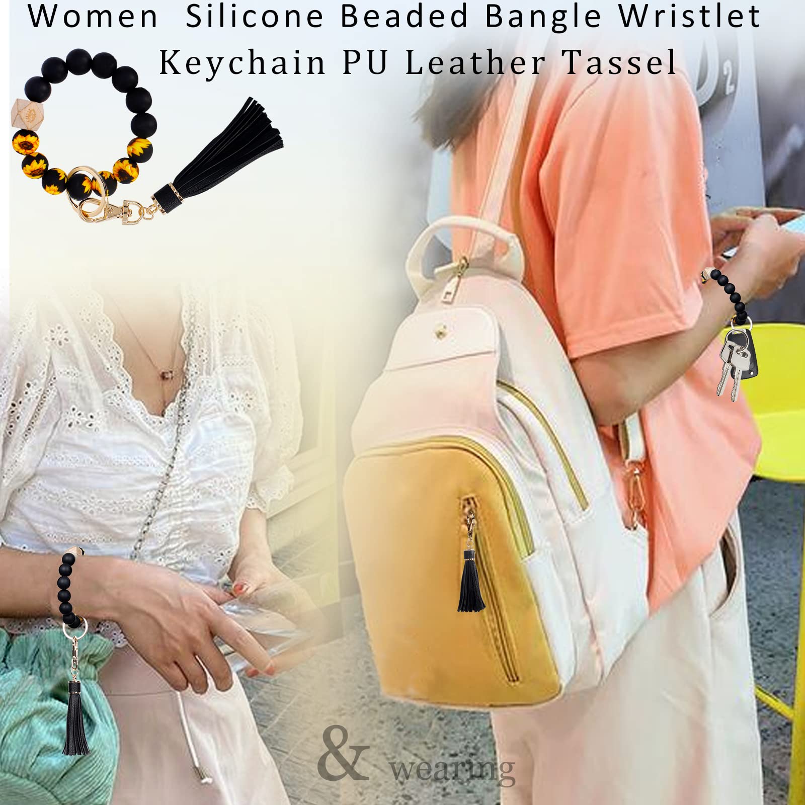 Wear together or separately: keychain bracelet can be wear together whenever, or you can take off the metal key and tassel, then wear silicone beaded bracelet on your wrist , the leather tassel can be used to decorate bags or pendants.