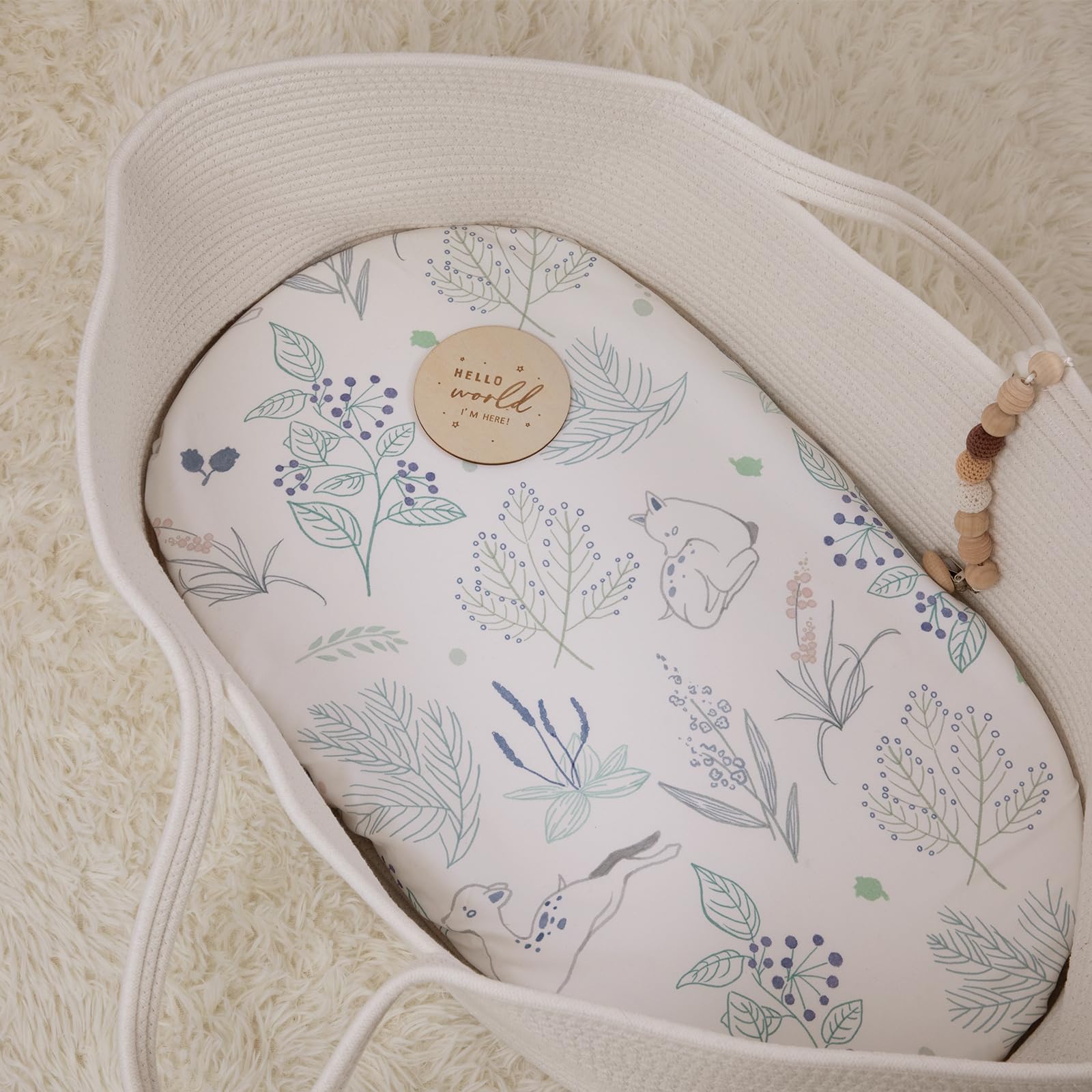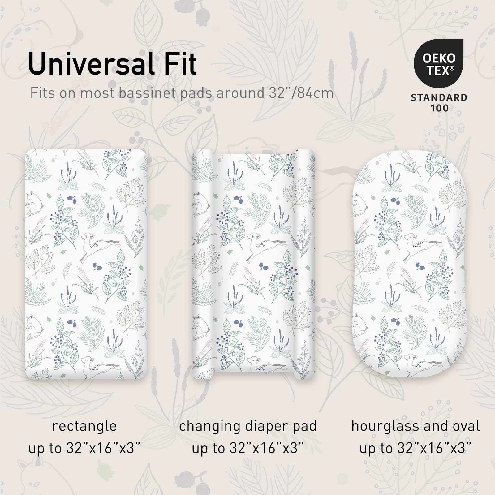 SUPER SOFT FABRIC: Our baby bedding bassinet sheets are made of soft and breathable fabric that best fits the standard bassinet crib. The elastic band surrounds the mattress, so mothers will not worry that it will slip away, creating a comfortable and stable sleeping space for the baby. Rest assured, every product meets the OEKO-TEX Standard 100 and is safe for babies