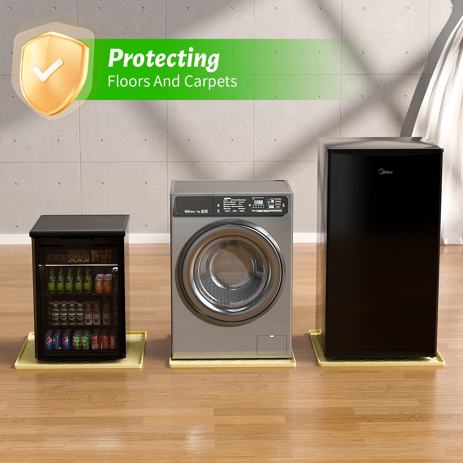 Multi-Functional and Versatile: Not only ideal for mini fridges, this silicone mat can also be used as a mini fridge mat for floors, washing machine mat, dryer mat, wine cooler mat, and dishwasher mat. Measuring 19.7"x19.7"x0.4", it fits a variety of appliances perfectly, providing comprehensive protection