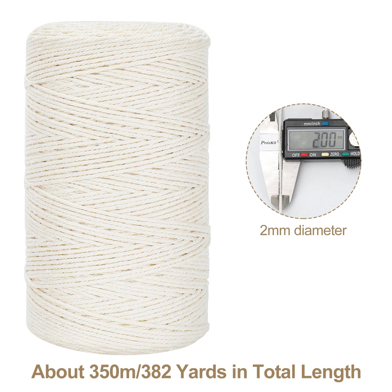 Size & Package: Macrame cotton string is 2mm (3/32") in diameter, the length is around 380yards for each spool. Our twisted cotton string is cut to length and packaged in spools, opp bag covered, keep it in stable and beautiful shape when shipped, easy to organize, prevent to mess when unraveled to use.