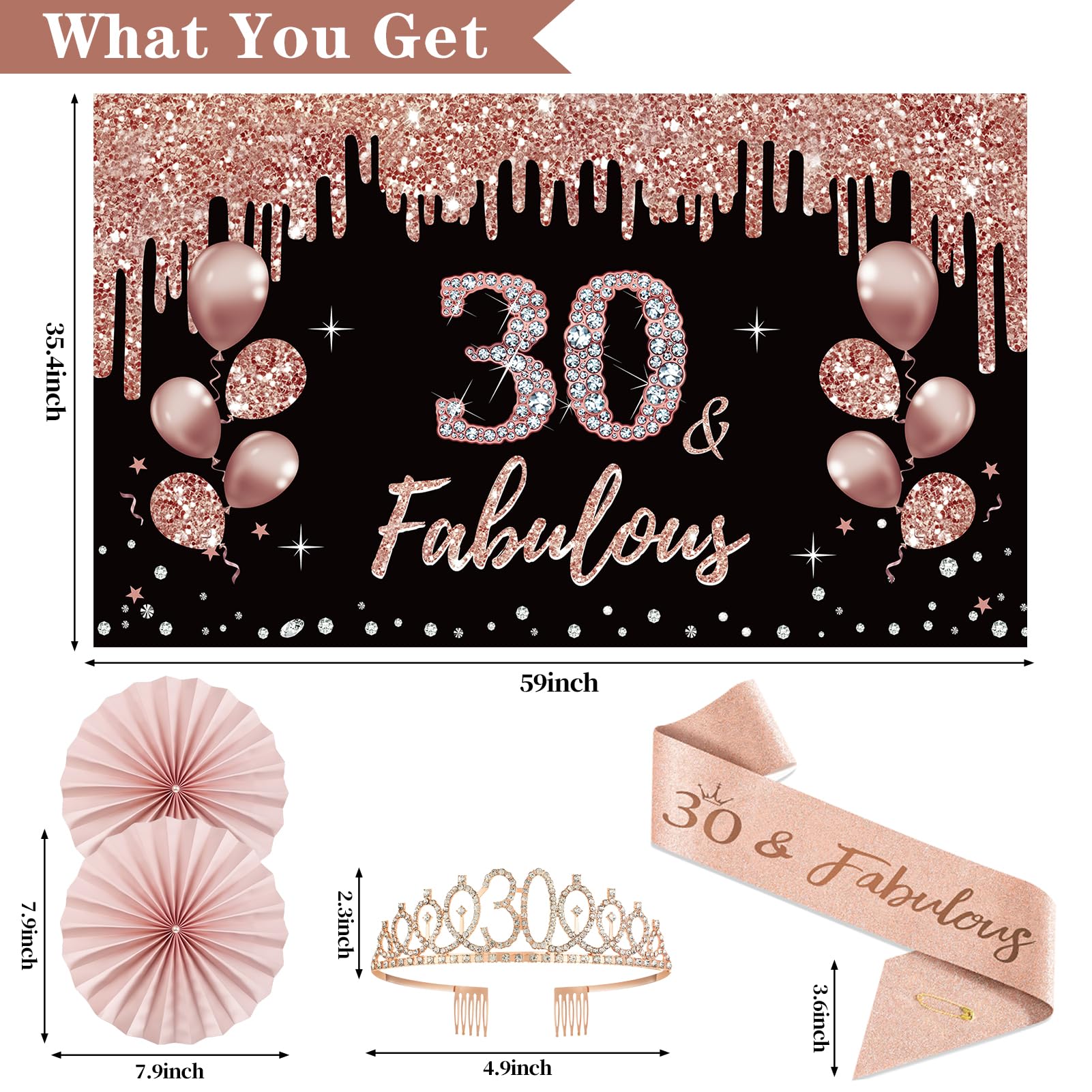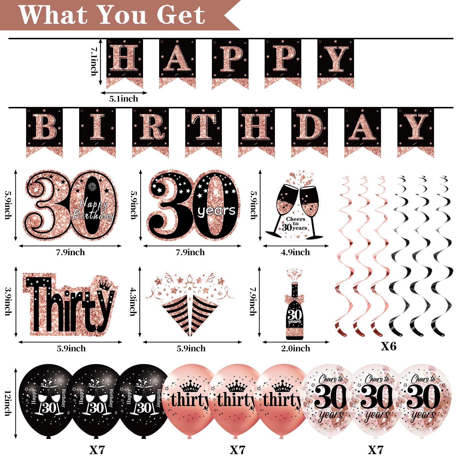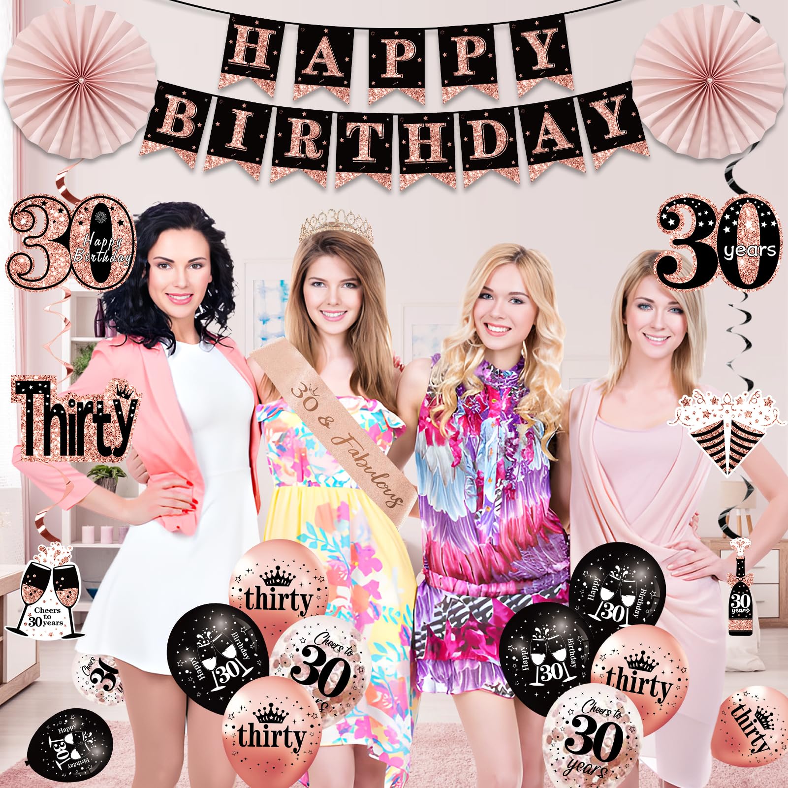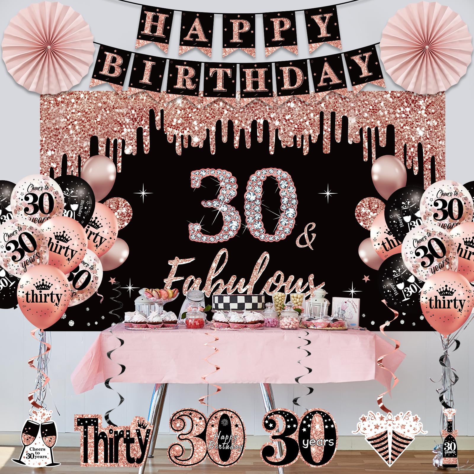 Rose gold 30th birthday decorations: Create a warm and elegant atmosphere with our womens 30th birthday party decorations. Cheers to 30 years