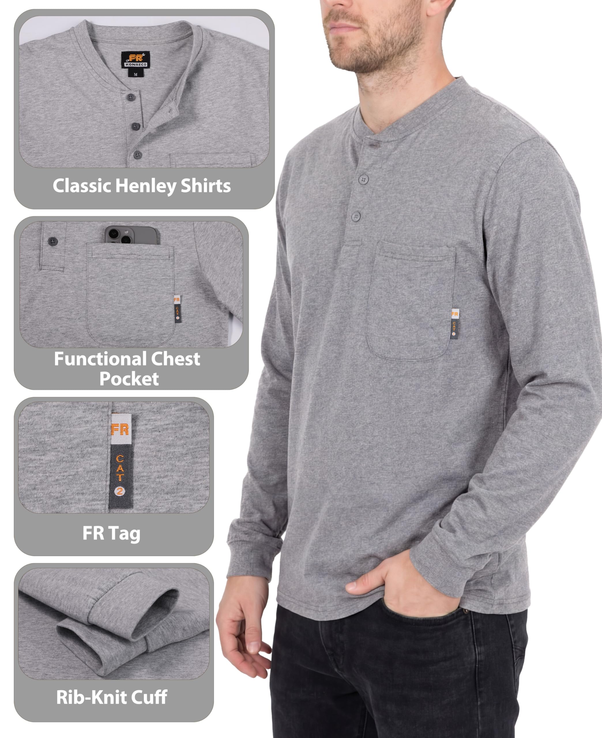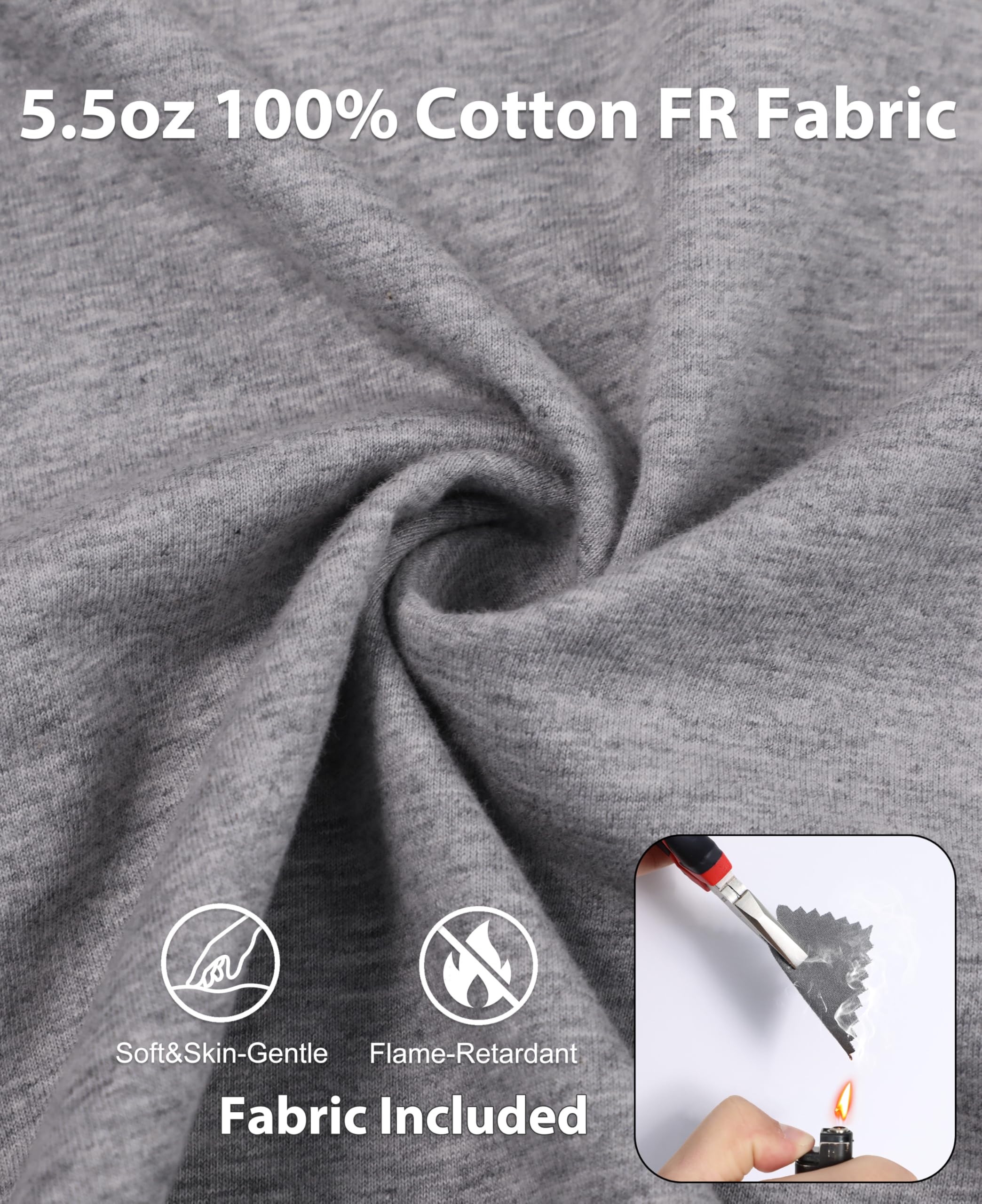FR MATRIALSοΌ5.5OZ cotton knit FR treated,FR buttons,FR sewing threads!Clear FR tag on arms and bottom front.