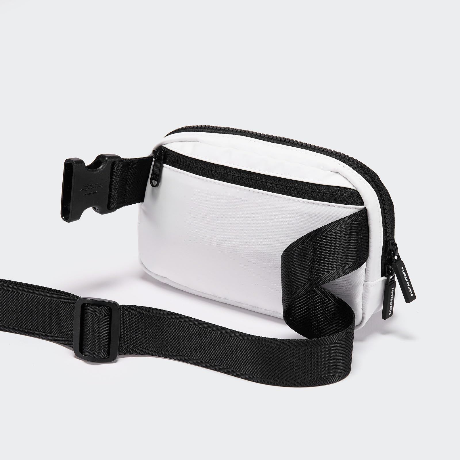 SUSTAINABILITY: Our mission is to focus on creating products for a SUSTAINABLE future. The belt bag's fabric is made from recycled nylon, the lining is made from recycled polyester – a versatile material that turns recycled bottles into bags.