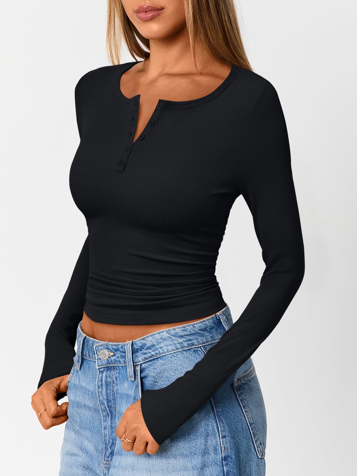 FEATURES: Trendy Queen versatile long sleeve henley top combines exceptional softness with a flattering slim fit. Designed for all-day comfort, it offers great freedom of movement and serves as a perfect year-round layering piece—wear it as a base layer in winter, a standalone top in spring and fall, or paired with shorts on cool summer evenings