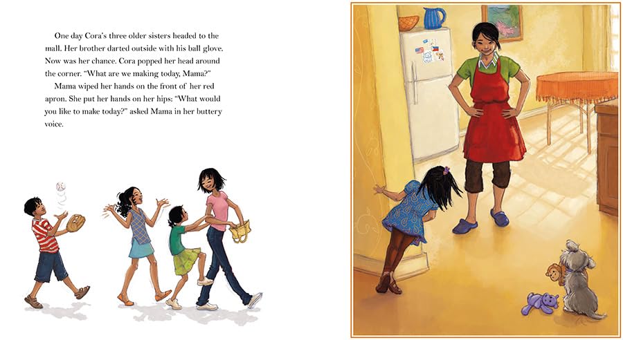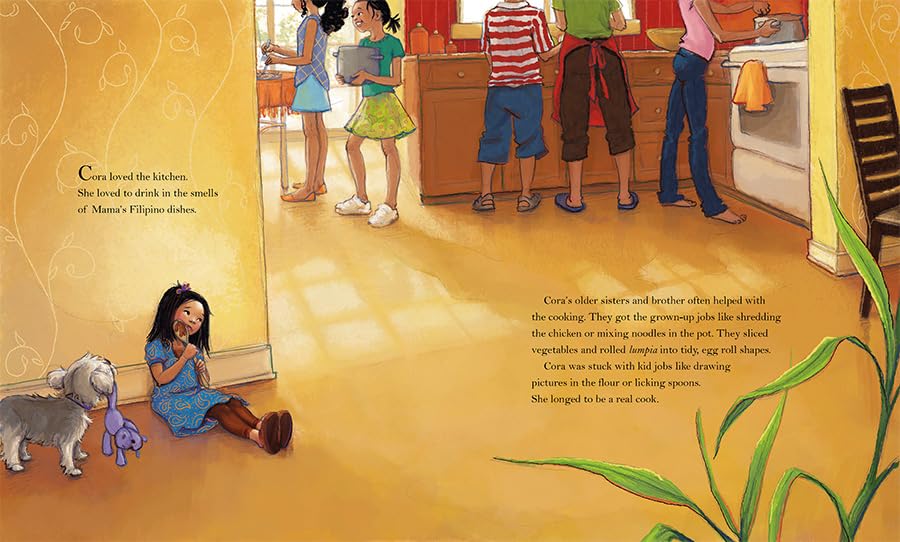 Cora and Mama work together to cook up pancit for the family in this celebration of Filipino heritage and foods. Cora loves being in the kitchen, but she always gets stuck doing the kid jobs like licking the spoon. One day, however, when her older sisters and brother head out, Cora finally gets the chance to be Mama's assistant chef. And of all the delicious Filipino dishes that dance through Cora's head, she and Mama decide to make pancit, her favorite noodle dish. With Mama's help, Cora does the grown-up jobs like shredding the chicken and soaking the noodles (perhaps Mama won't notice if she takes a nibble of chicken or sloshes a little water on the floor). Cora even gets to stir the noodles in the pot-carefully-- while Mama supervises. When dinner is finally served, her siblings find out that Cora did all their grown-up tasks, and Cora waits anxiously to see what everyone thinks of her cooking. Dorina Lazo Gilmore's text delightfully captures the warmth between mother and daughter as they share a piece of their Filipino heritage. With bright and charming illustrations by Kristi Valiant, Cora's family comes alive as Cora herself becomes the family's newest little chef.