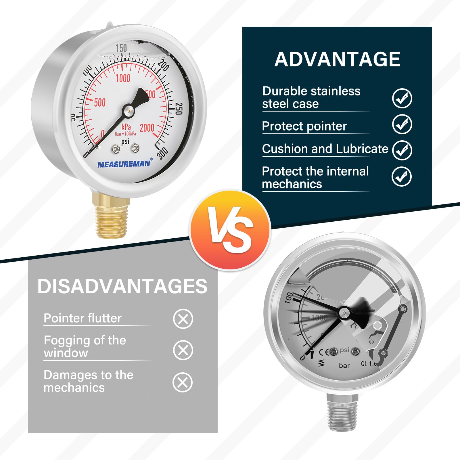 For pressure measuring of gas, liquid which is not corrosive to brass, also where vibration and pulsation is a concern.
