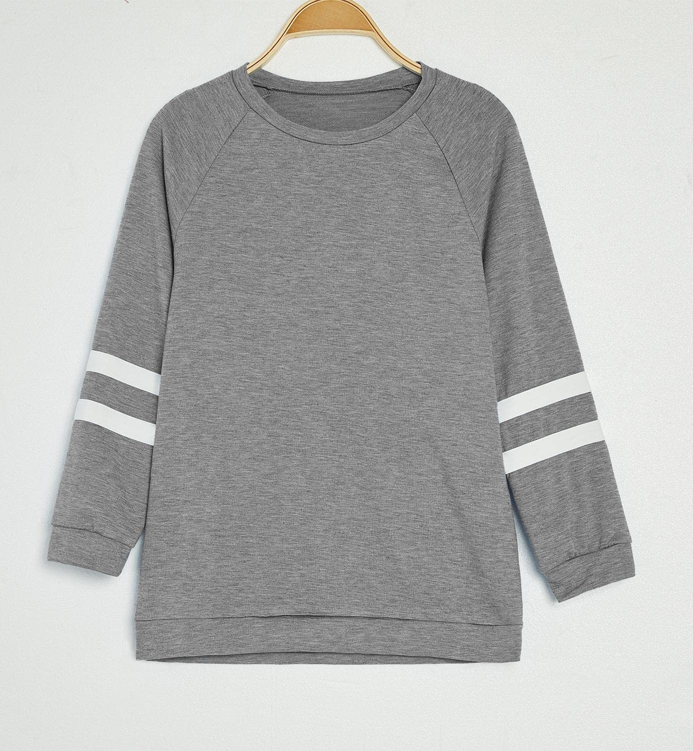 FEATURE: crewneck sweatershirt, long sleeve, striped design on the sleeves, loose fit style, cozy and chunky material, pullover hoodies for girls hip length long sleeve tunic shirts