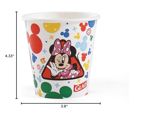Glad for Kids brings a touch of fun and excitement to your everyday routine with these Disney Mickey and Friends 3oz paper cups. Perfectly sized for little hands, these kids bathroom cups measure just 2.25 inches tall and hold 3 ounces of fluid, making them the ideal choice for rinsing after brushing or using mouthwash. The colorful designs featuring beloved characters like Mickey Mouse, Minnie Mouse, Donald Duck, Daisy, Goofy, and Pluto add charm to any routine. These small disposable cups are sturdy, soak-proof, and designed for daily use, ensuring no leaks or mess. Parents can trust that these disposable paper cups will hold up, whether their child is swishing mouthwash or using them as a quick rinse cup. Each pack contains 20 vibrant 3 oz cups, making them a must-have addition to any Mickey Mouse bathroom set. Designed with convenience in mind, these disposable paper cups make clean-up a breeze. No need to worry about washing cups – simply dispose of them after each use for a hassle-free experience. They’re perfect for daily use and for any occasion where a little extra fun is needed, like parties or family gatherings.