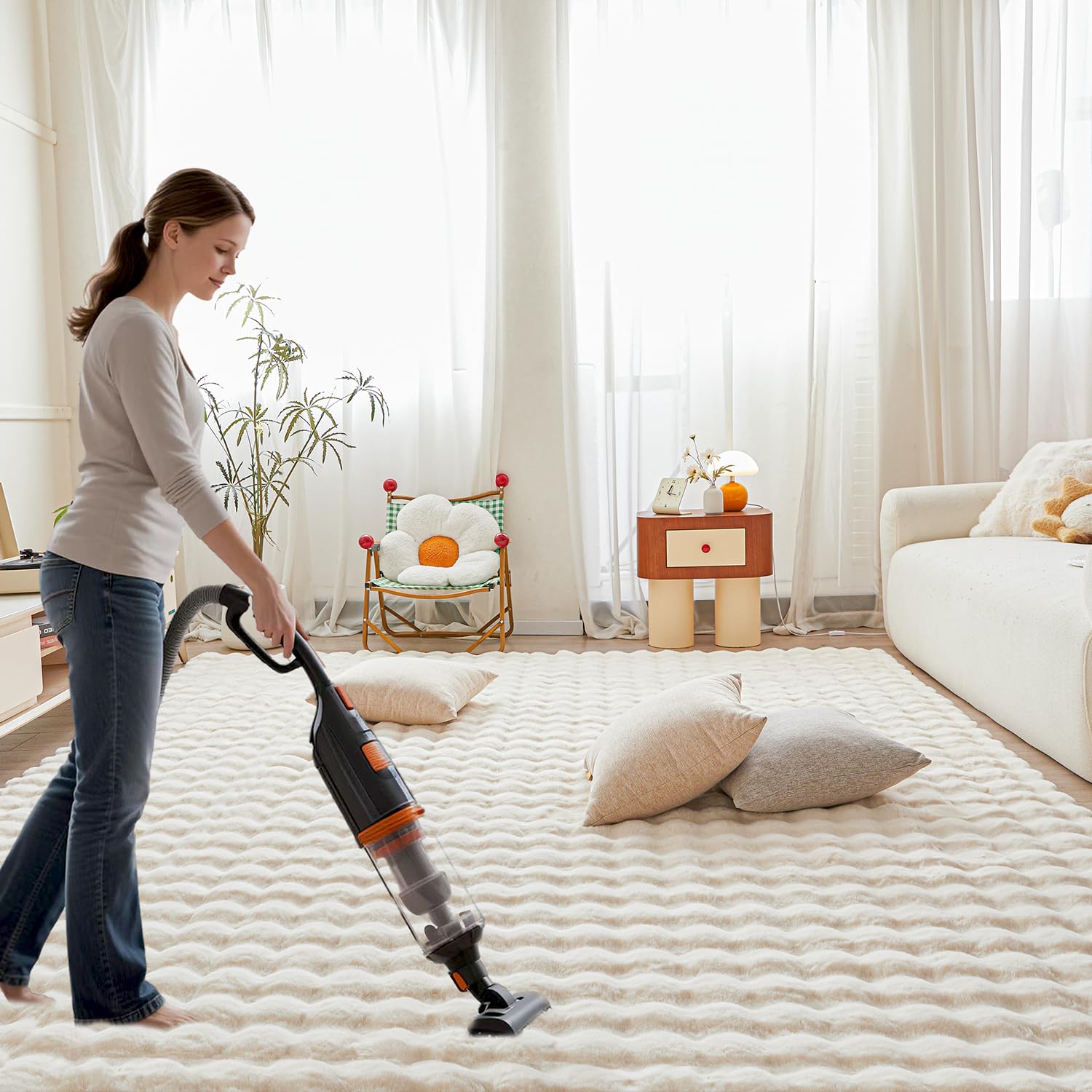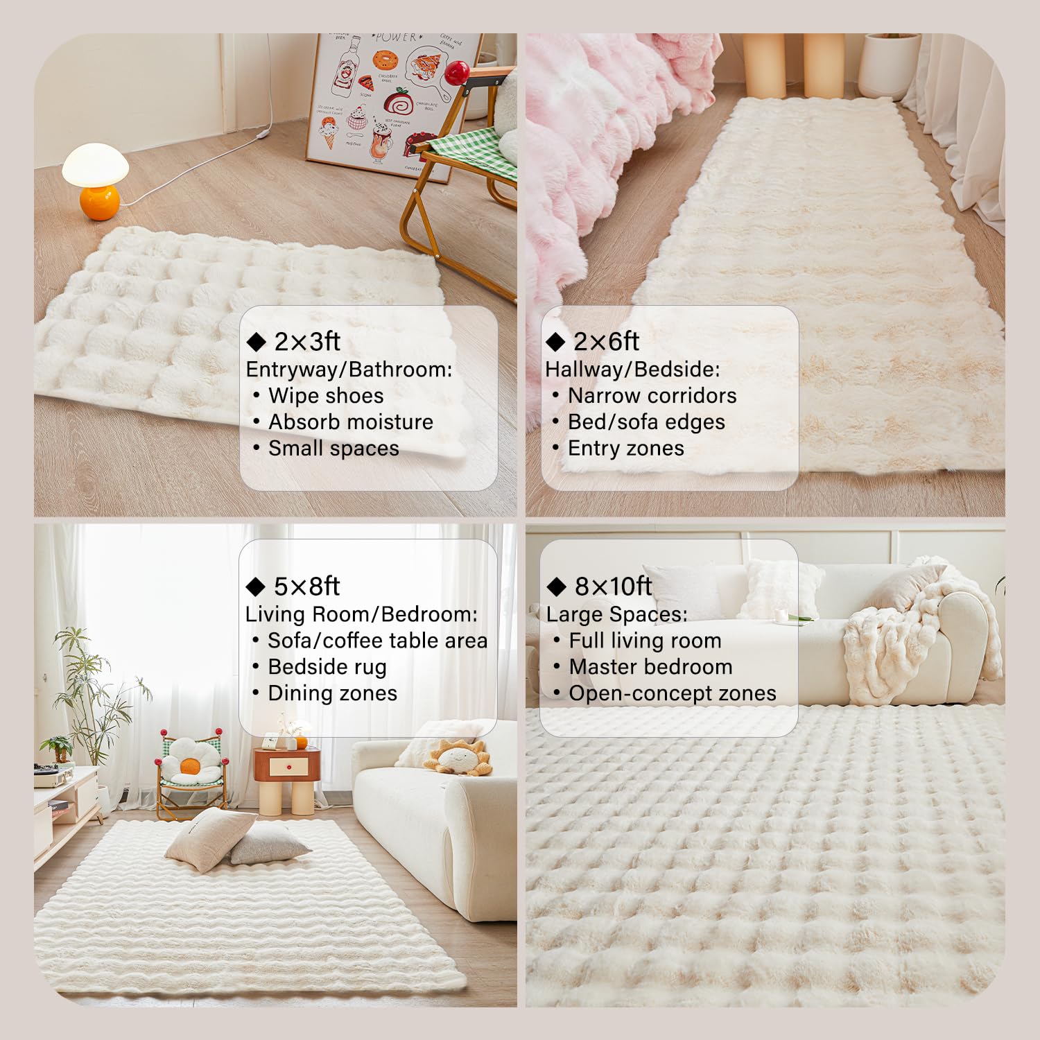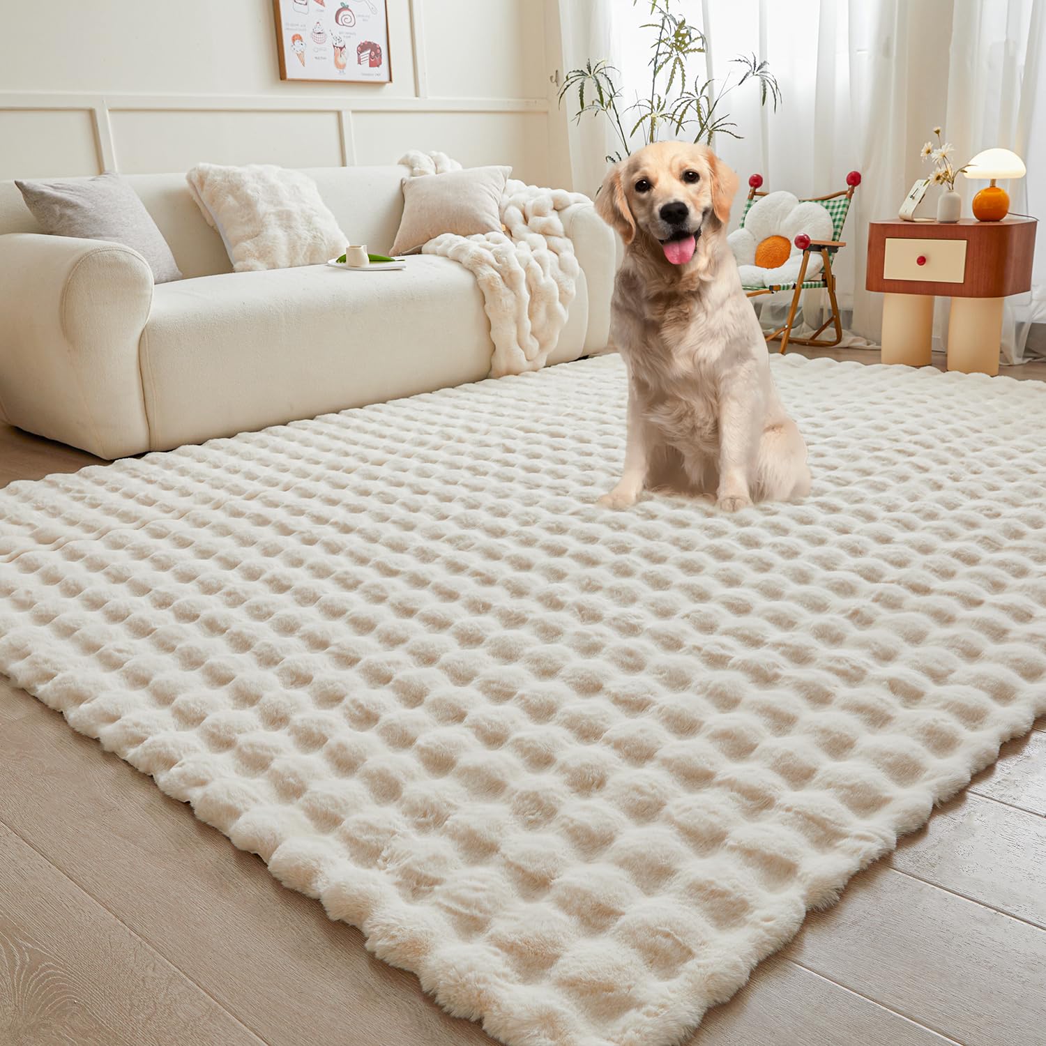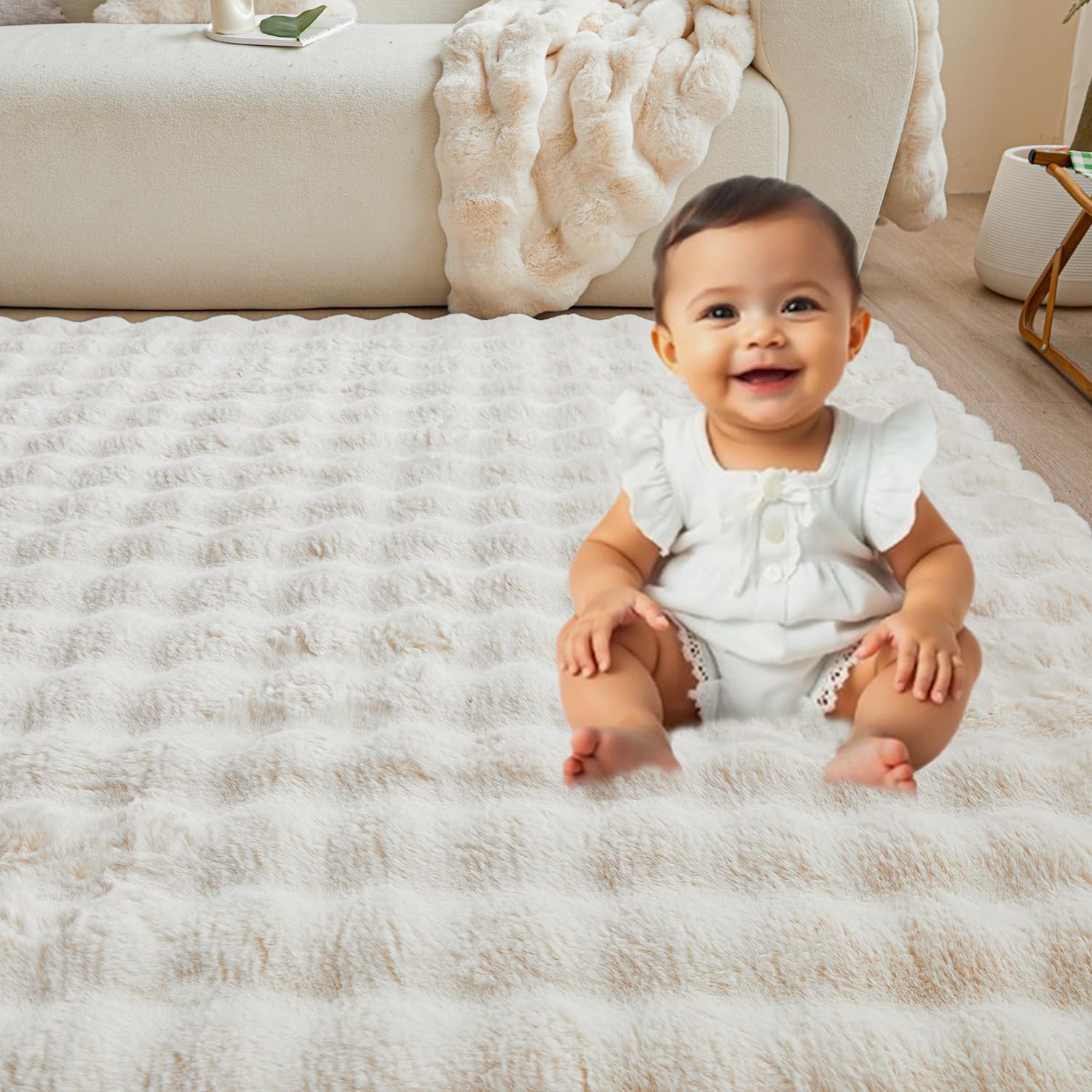 Vacuum-packed for eco-friendly shipping. The key first step: gently shake and pat the rug after unboxing to help restore its fluffiness. Any packaging creases are normal and will smooth out within 1-2 days when laid flat.