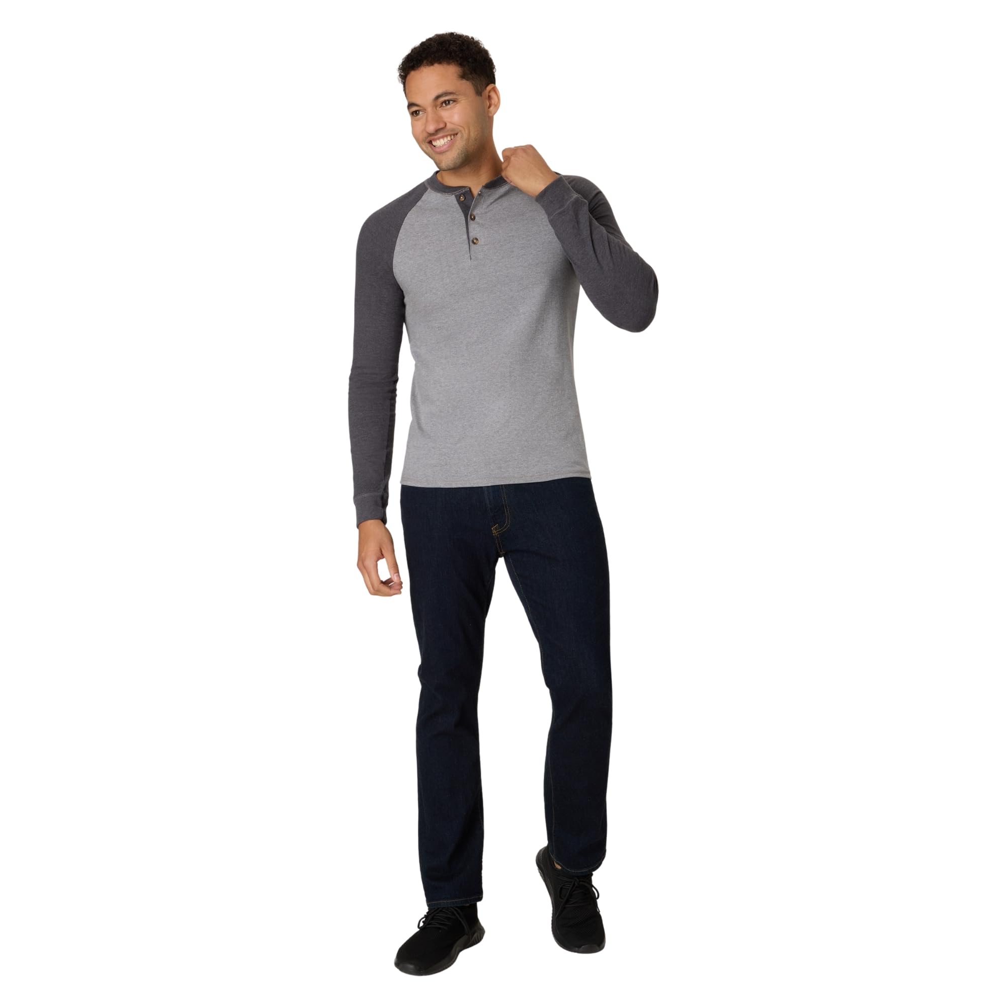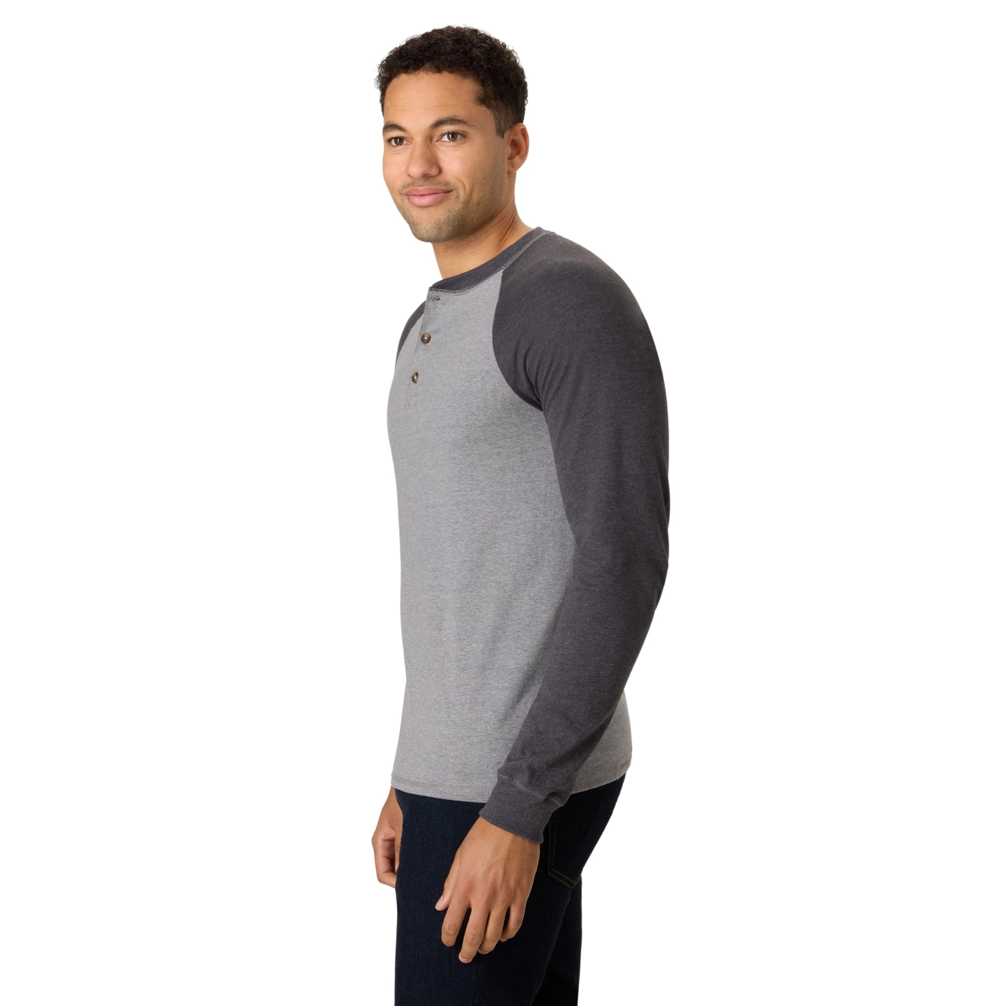 HENLEY STYLE - These Hanes men's cotton t-shirts boast a rounded neckline, three-button placket, and long sleeves.