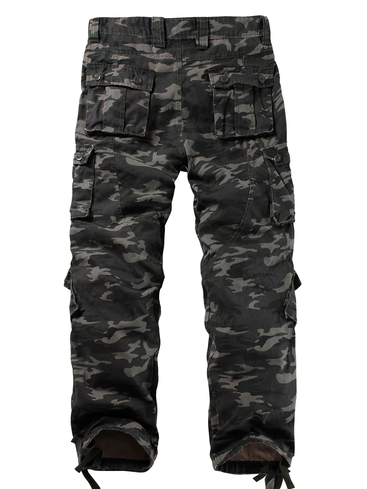 Product Features:Men's casual wild pants features straight leg openings with drawstring tie to fit with boots, can adjust the opening of hem prevent wind, prevent trees from being scratched and make outdoor activeities more convenience.Also,this versatile, relaxed fit,camo cargo pants for men sits at waist ,straight leg openings with drawstring tie to fit with boots are great for hunting pants, working pants, military style BDUs, costume pants.