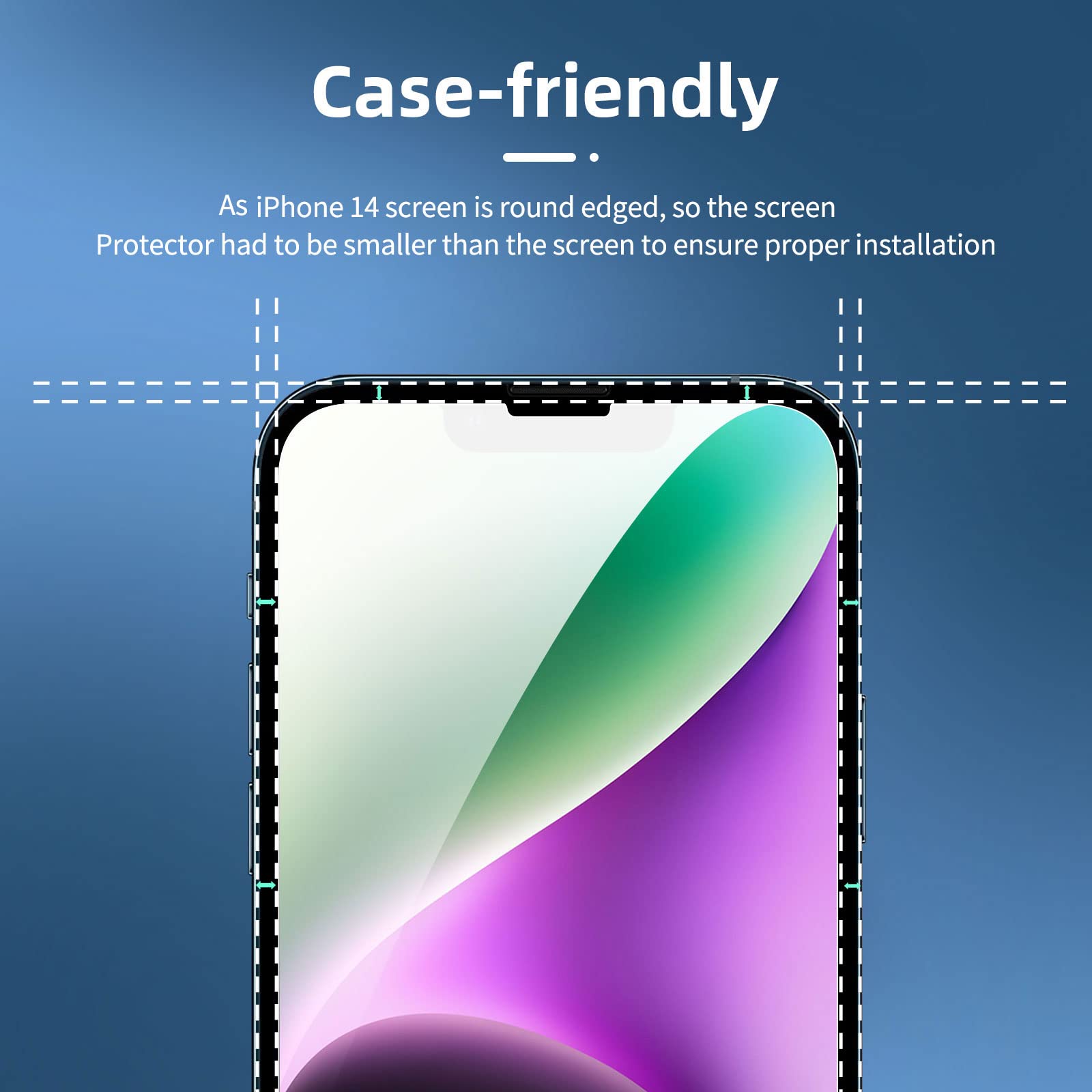NEW'C iPhone 14 [6.1 inch] Tempered Glass Delicate Touch: It is coated on the back with a strong silicone adhesive that makes installation easier and attaches the film firmly so as not to affect the sensitivity of the screen. Dust-free, fingerprint-free, push button for easy bubble-free installation.