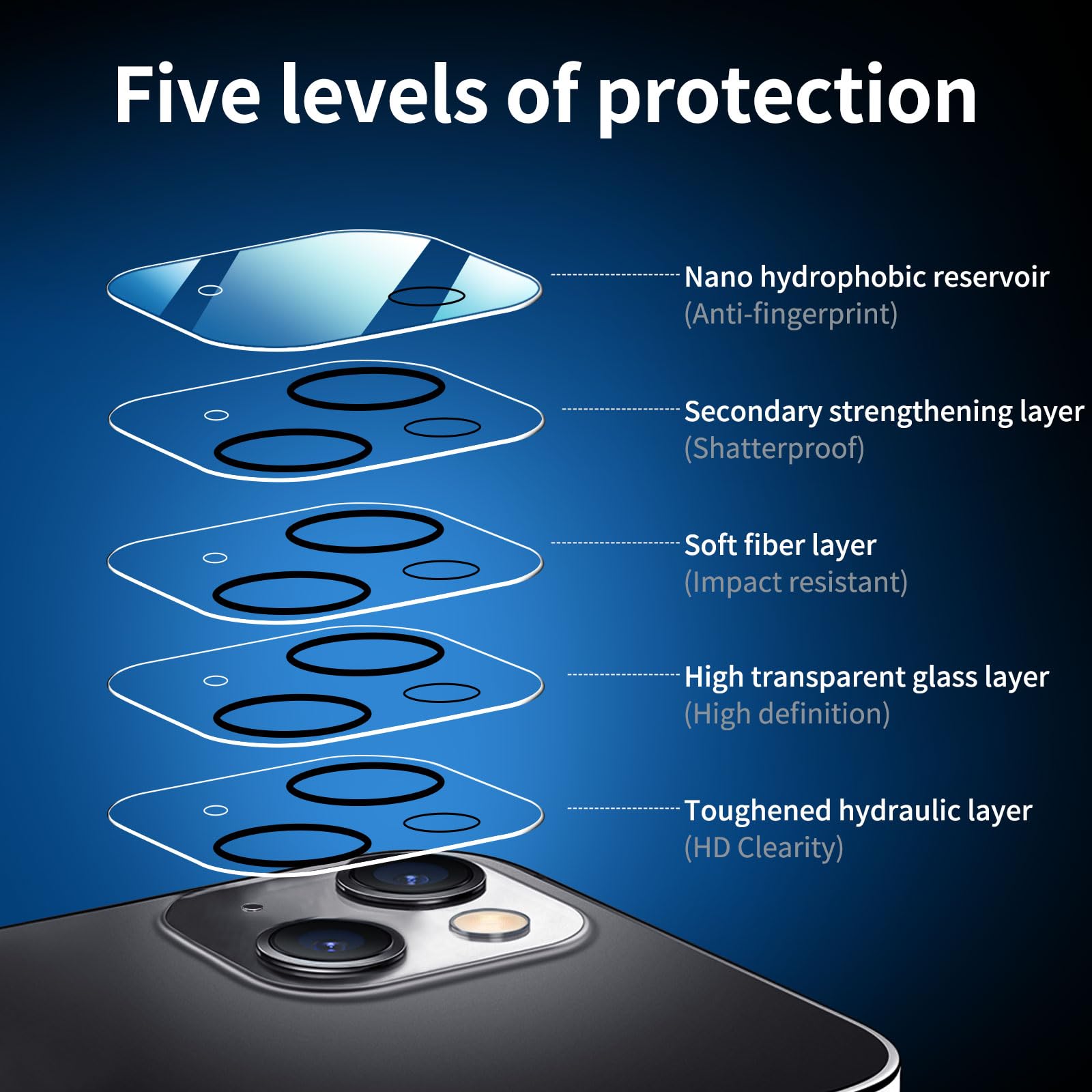 Contents: 2 x tempered glass screen protector and 2 x camera lens protector for iPhone 14 [6.1 inch]. Dual front and back protection of the phone