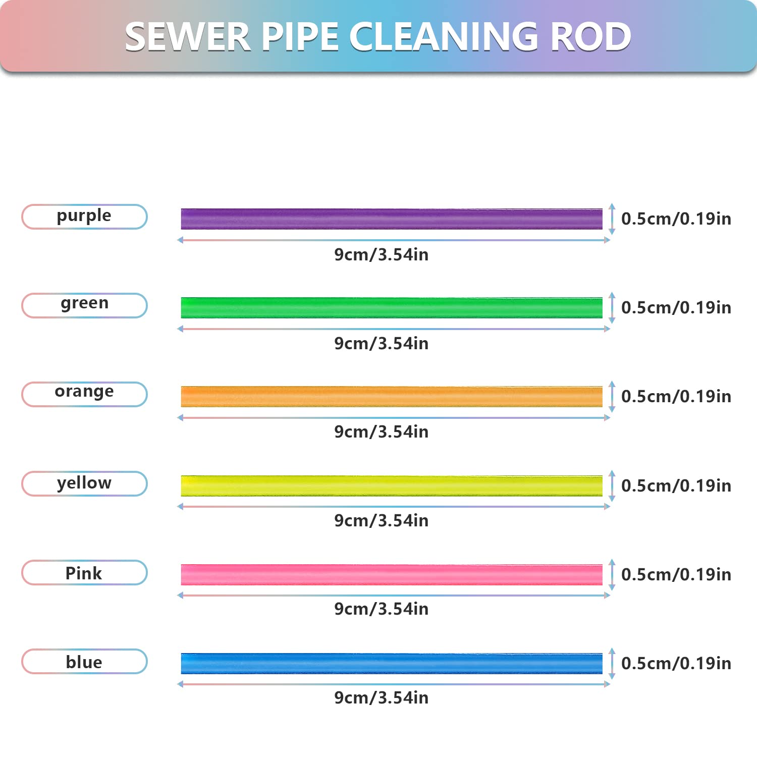 Includes 6 colors 72 drain cleaner sticks and each 3.93 inches.