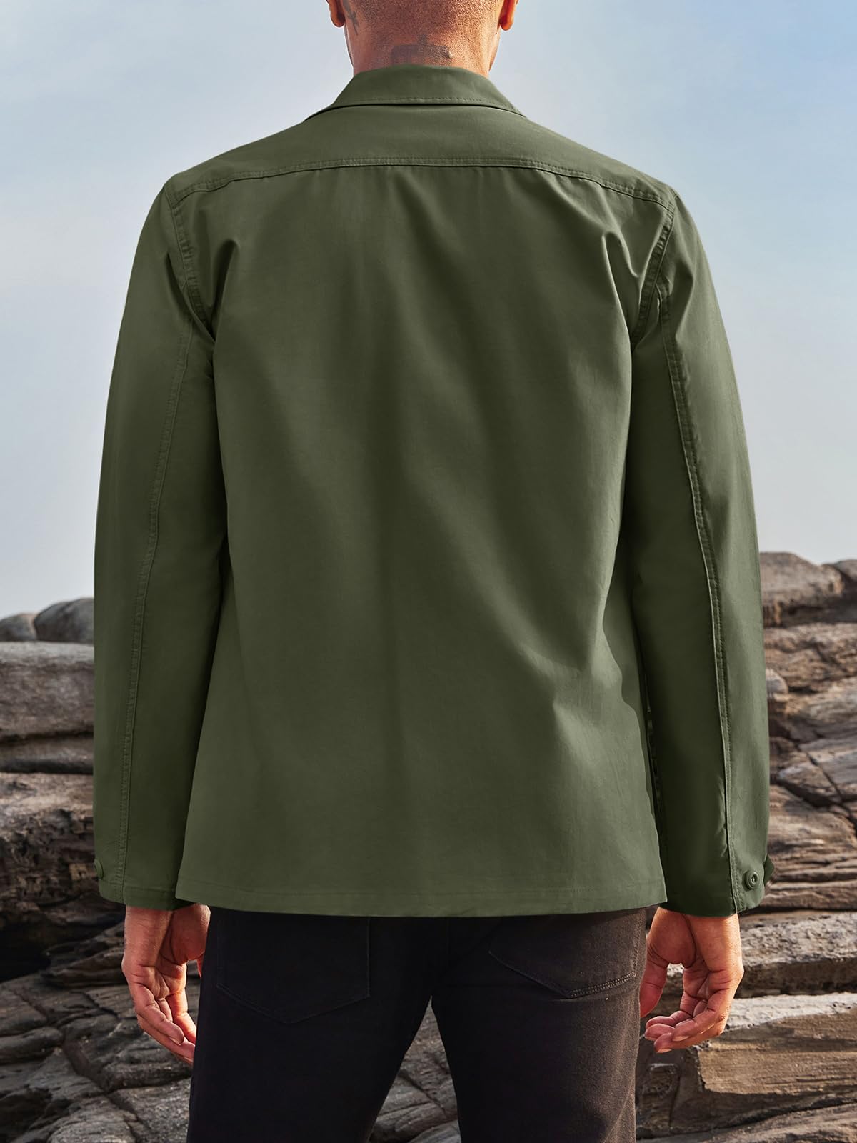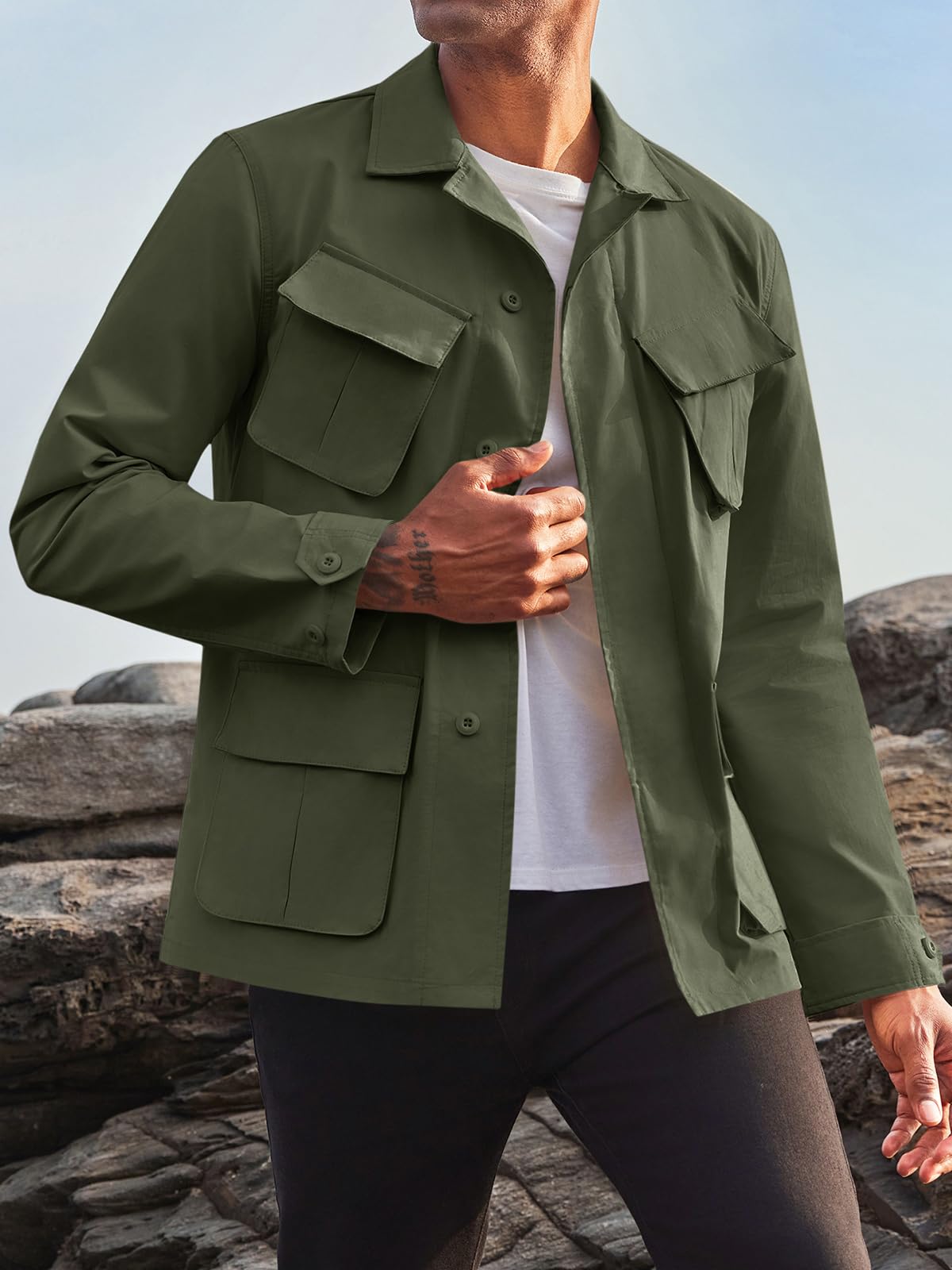 FEATURESοΌSafari jacket for men, lightweight military windbreaker jacket, pure cotton, solid color, long sleeve, button down, stylish jacket, turn down collar, natural fit, multi pocket. Spring fall winter coats, Casual Jacket, keep fashion and comfortable.