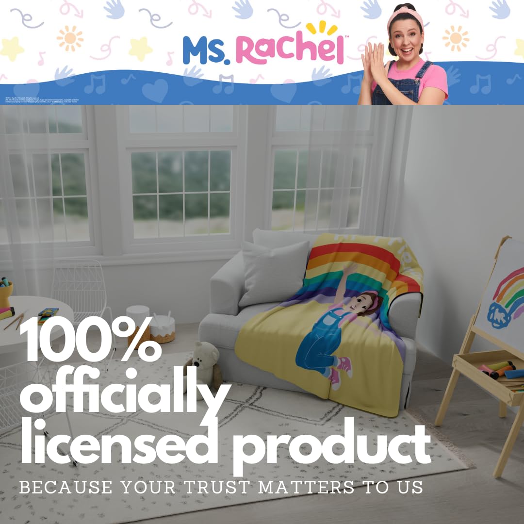 ITEM INCLUDES (PRINTS MAY VARY!): Included is super soft Ms. Rachel throw measuring 46" (W) x 60" (L). Perfectly sized to snuggle-up on the sofa at naptime for children or toddlers while traveling.