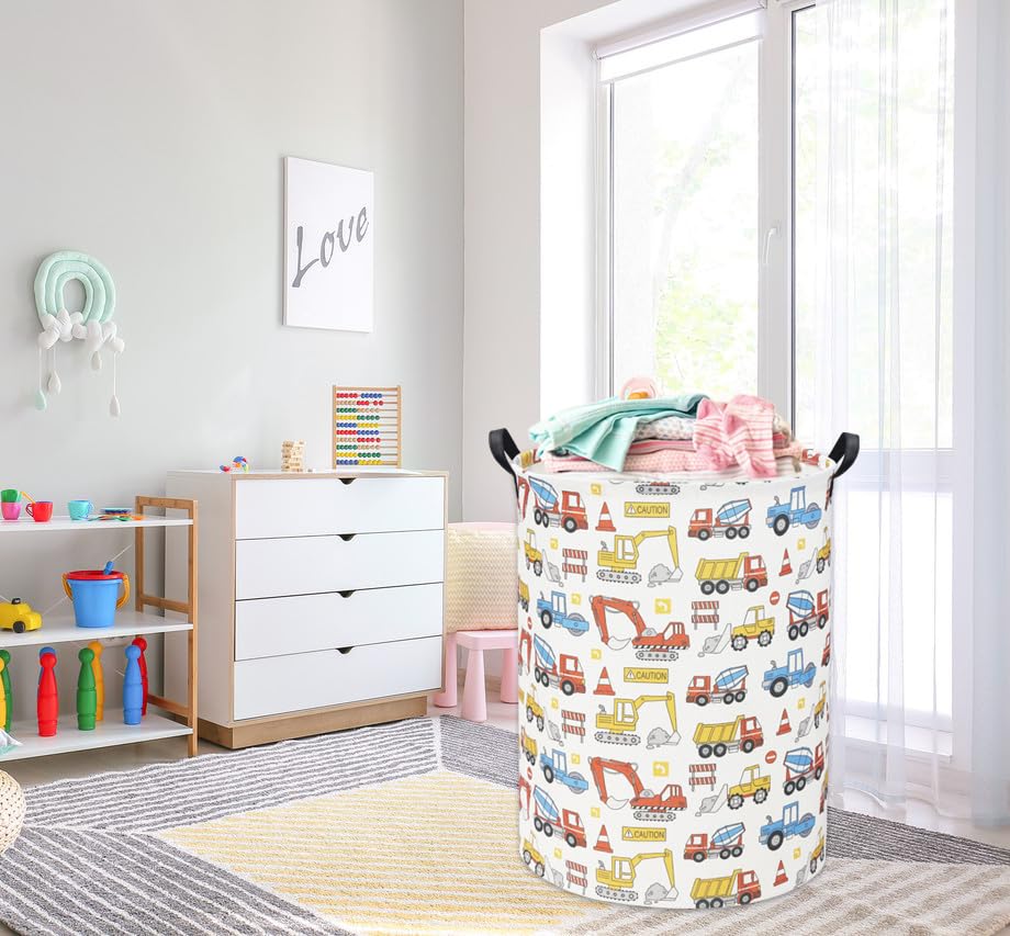 Material: The kids toy hamper is made of linen & cotton fabric. Waterproof PE coating inner,lightweight and durable. Our storage bin equip with two handles, moving conveniently.