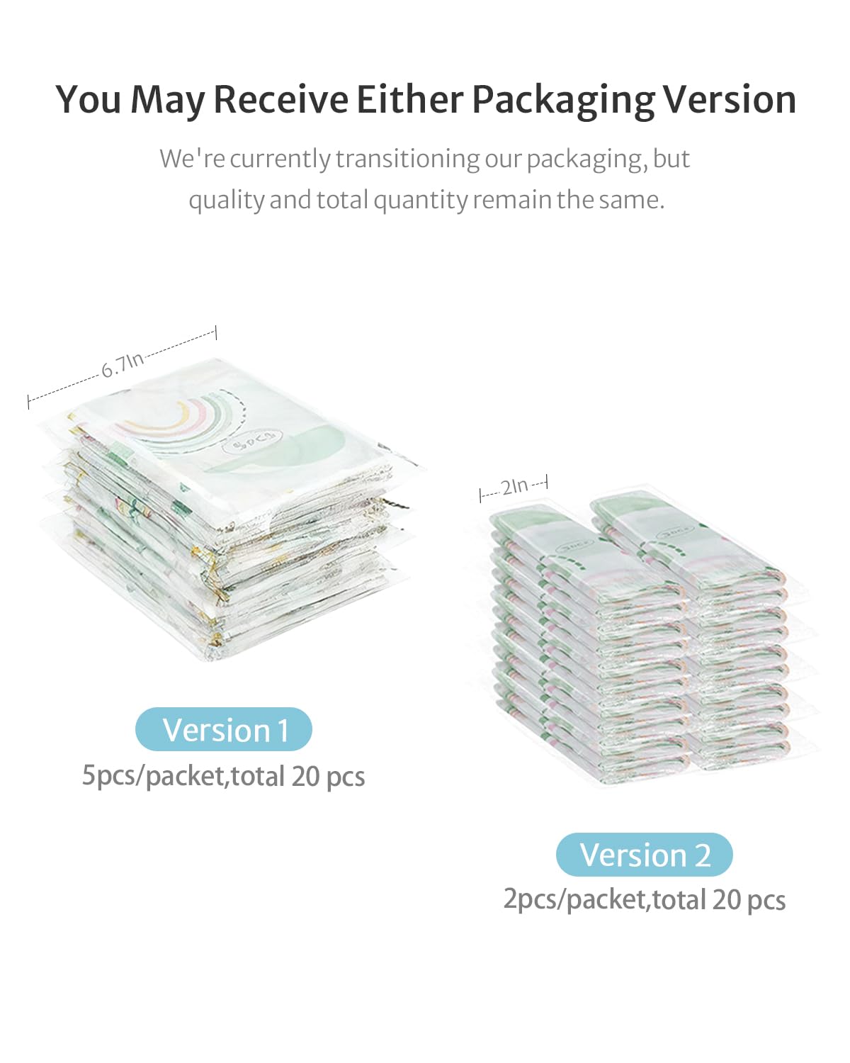 Great For On The Go: Travel size small enough to carry in your purse or put in your bag.We're currently transitioning packaging — you may receive either the 5pcs/packet or 2pcs/packet version.Total 20 pcs, super value