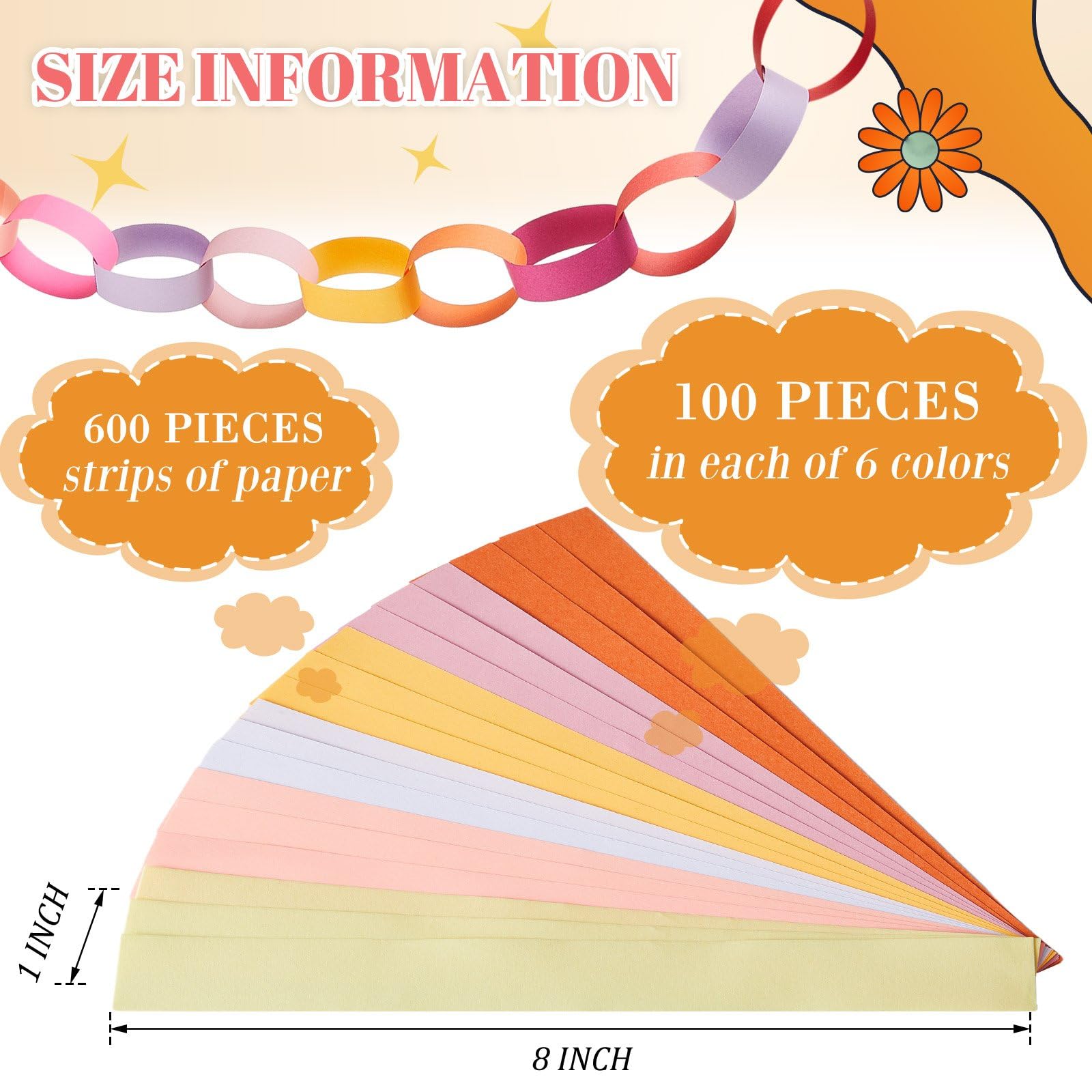 Abundantly Colorful Paper Strips: the color palette is bountiful with our 600 sheets paper chain strips, equipped with 2 rolls of double sided tapes; The abundant quantity means you can create a paper chain that can stretch up to 28 feet in total length; The multitude of colors available broadens your design spectrum, bringing out ingenuity and creativity