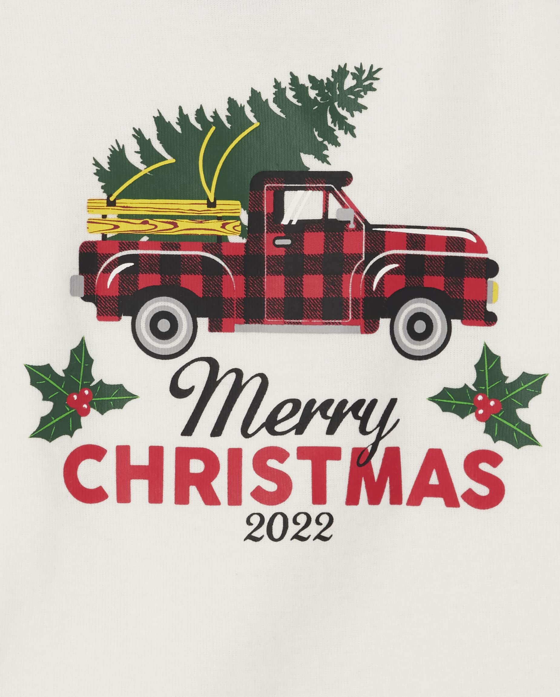 PAJAMA TOP — Features long raglan sleeves, rib-knit crew neck and sleeve cuffs and 'Merry Christmas 2022' with truck graphic design at front