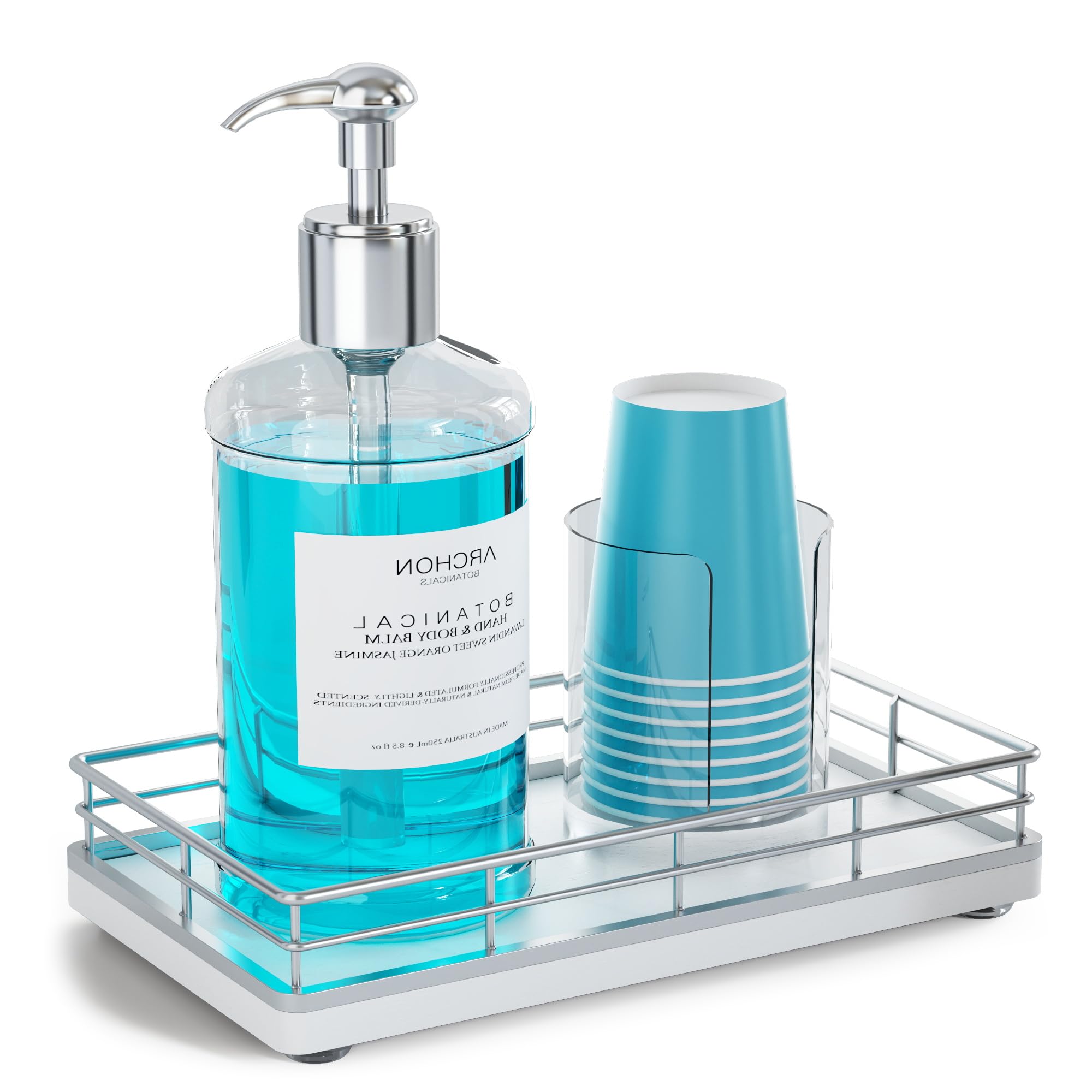 Versatile Functionality: Elevate your daily routine with our tray for bathroom counter; Neatly arrange bathroom essentials like mouthwash with cups, toothbrushes, cotton swab, keeping your countertop tidy; Add a touch of elegance to your dresser by using the vanity tray to showcase perfumes, jewelry, and candles; The small tray can also be used to store keys, watches and change at the entrance