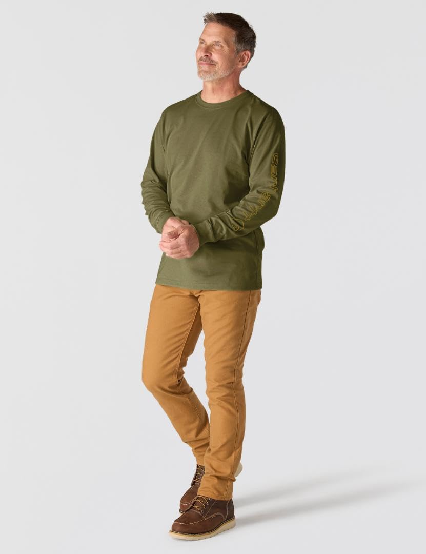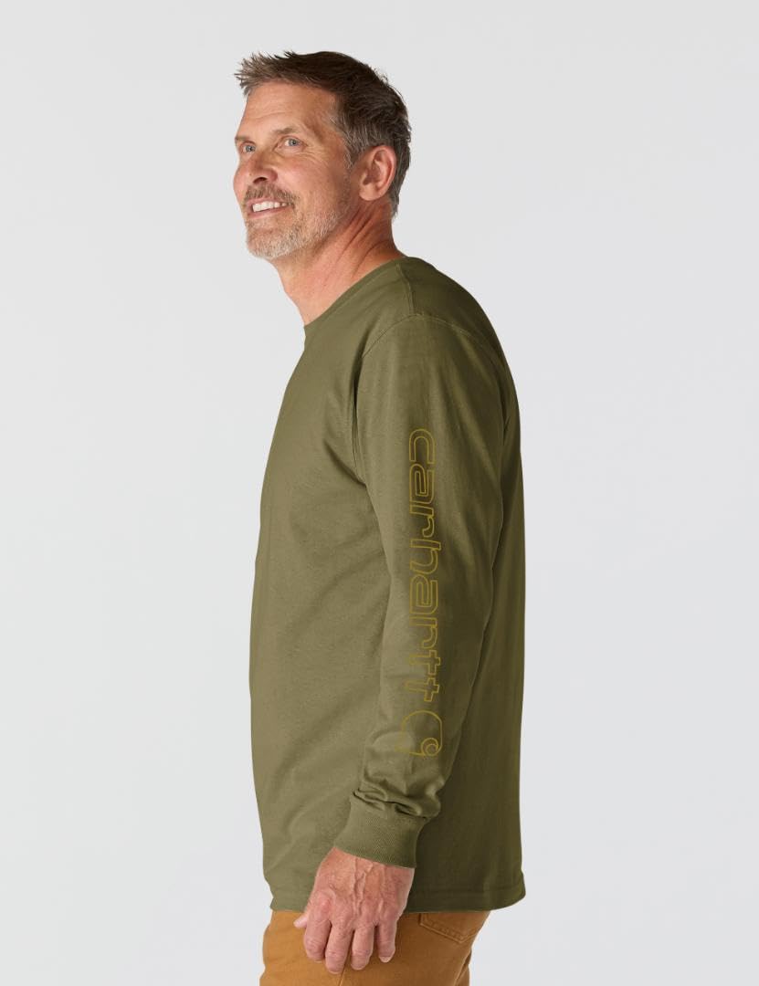 Description For well over a century, the Carhartt name has stood for quality and dependability on the job. This men's long-sleeve t-shirt is made of heavyweight cotton jersey and features a Carhartt logo on the sleeve.