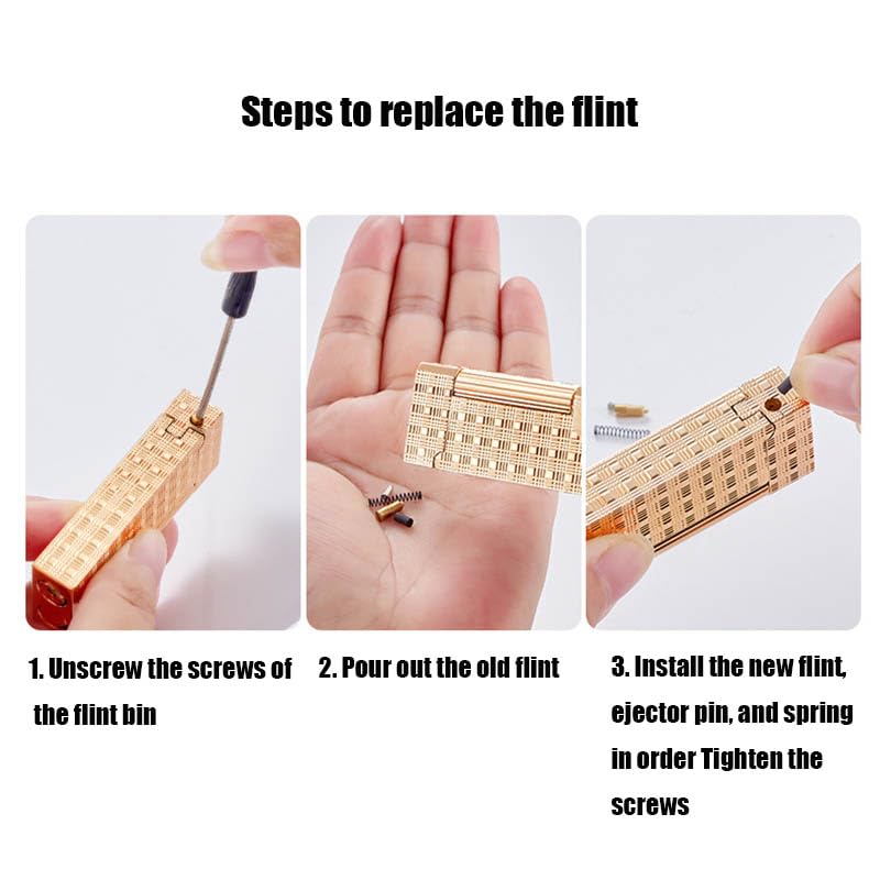 Applicable flint: Applicable to 2.2-2.3mm flints, 6 pieces of spare flints are included in the package. If there are too few sparks when the lighter is ignited, you can replace the flint.