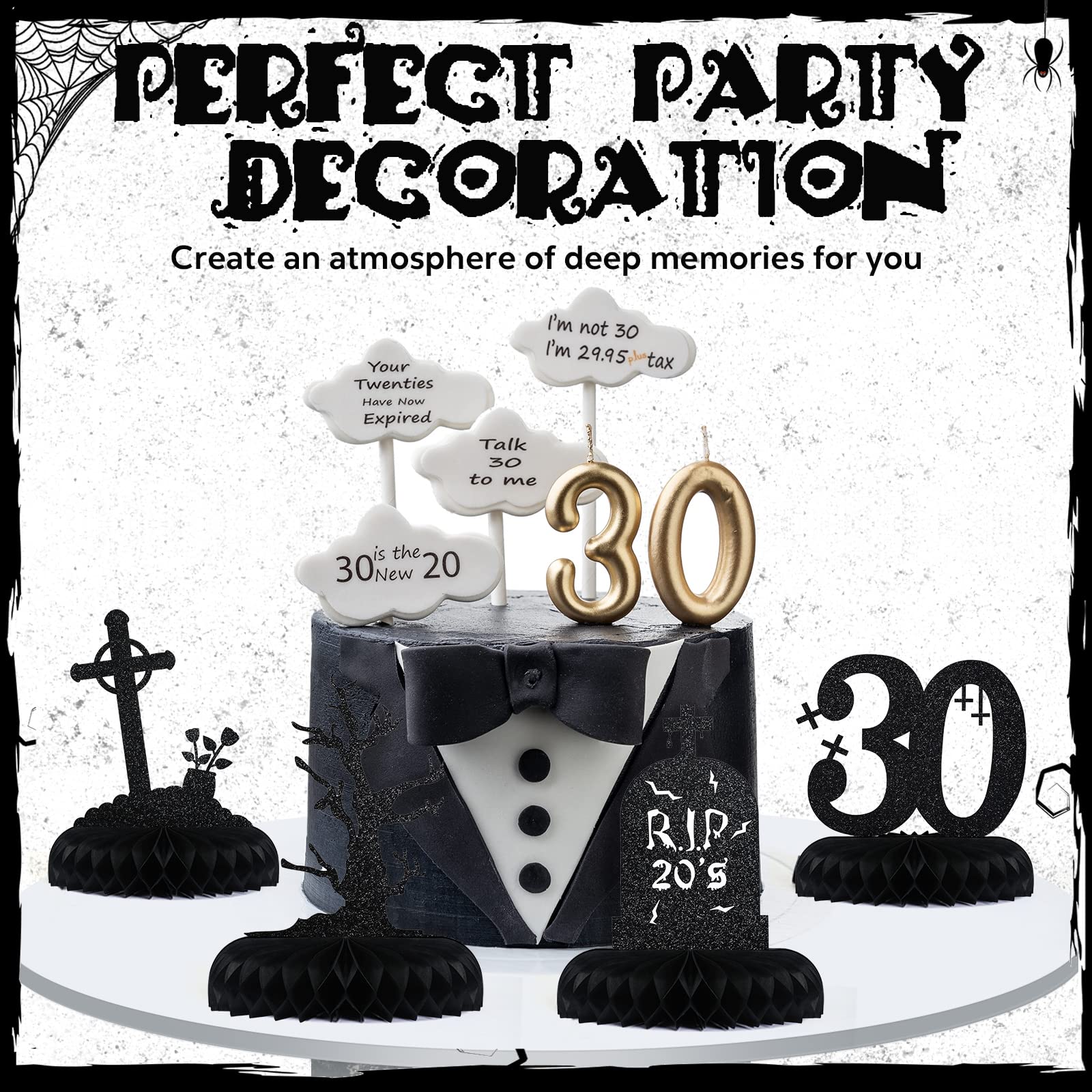 Novel Design: the product is made of solid cardstock and can be applied again; The precut cards are easy to assemble, and the novel pattern design fits well with the youth funeral theme party; With exquisite and rich 30th birthday party elements, they create a strong 30th birthday party atmosphere, and wish you a happy and wonderful time on this special day