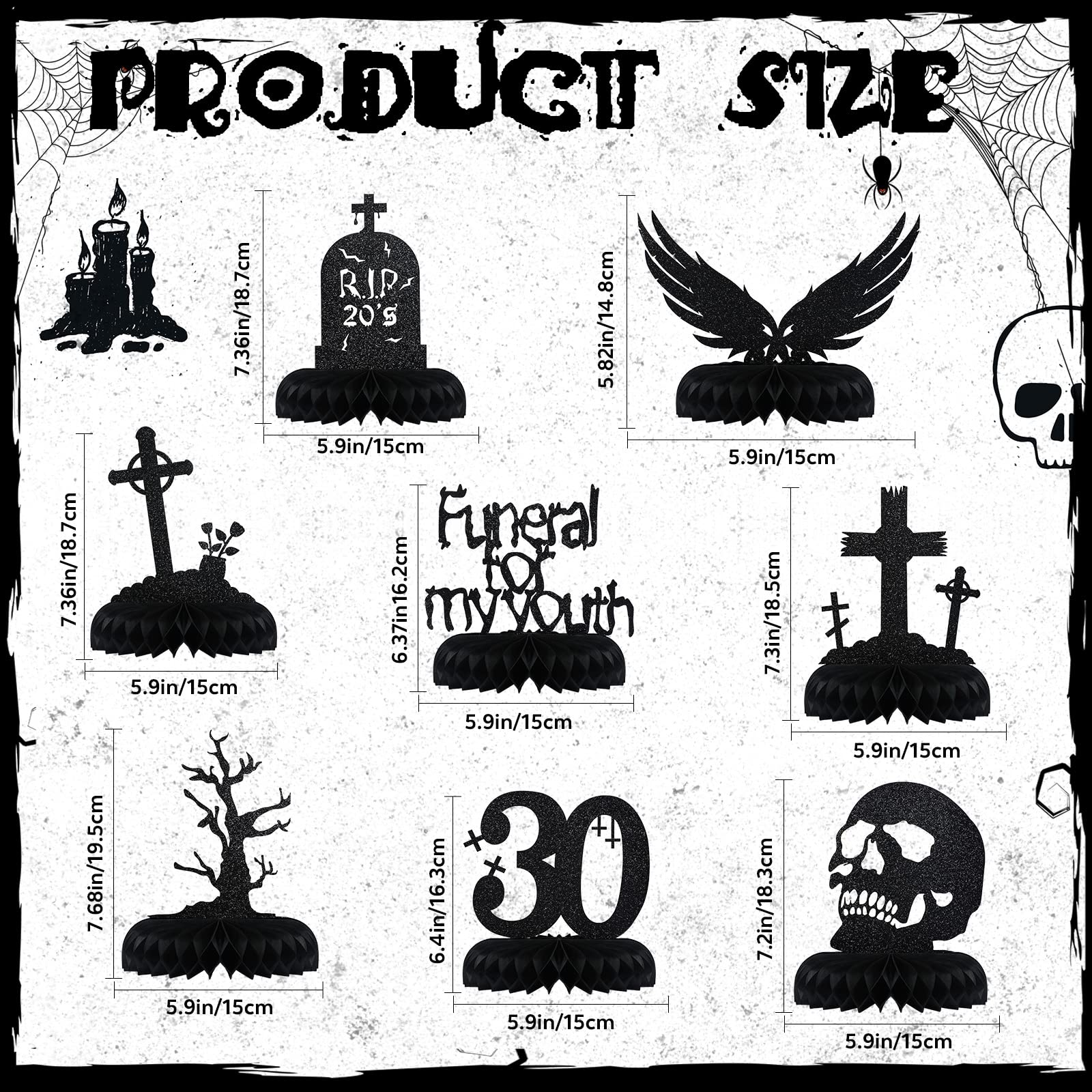 Package Includes: you will get 8 pack black and pink glitter 30th birthday themed party table decorations, including 8 pieces of 30th youth funeral signs and 8 sets of paper honeycomb balls