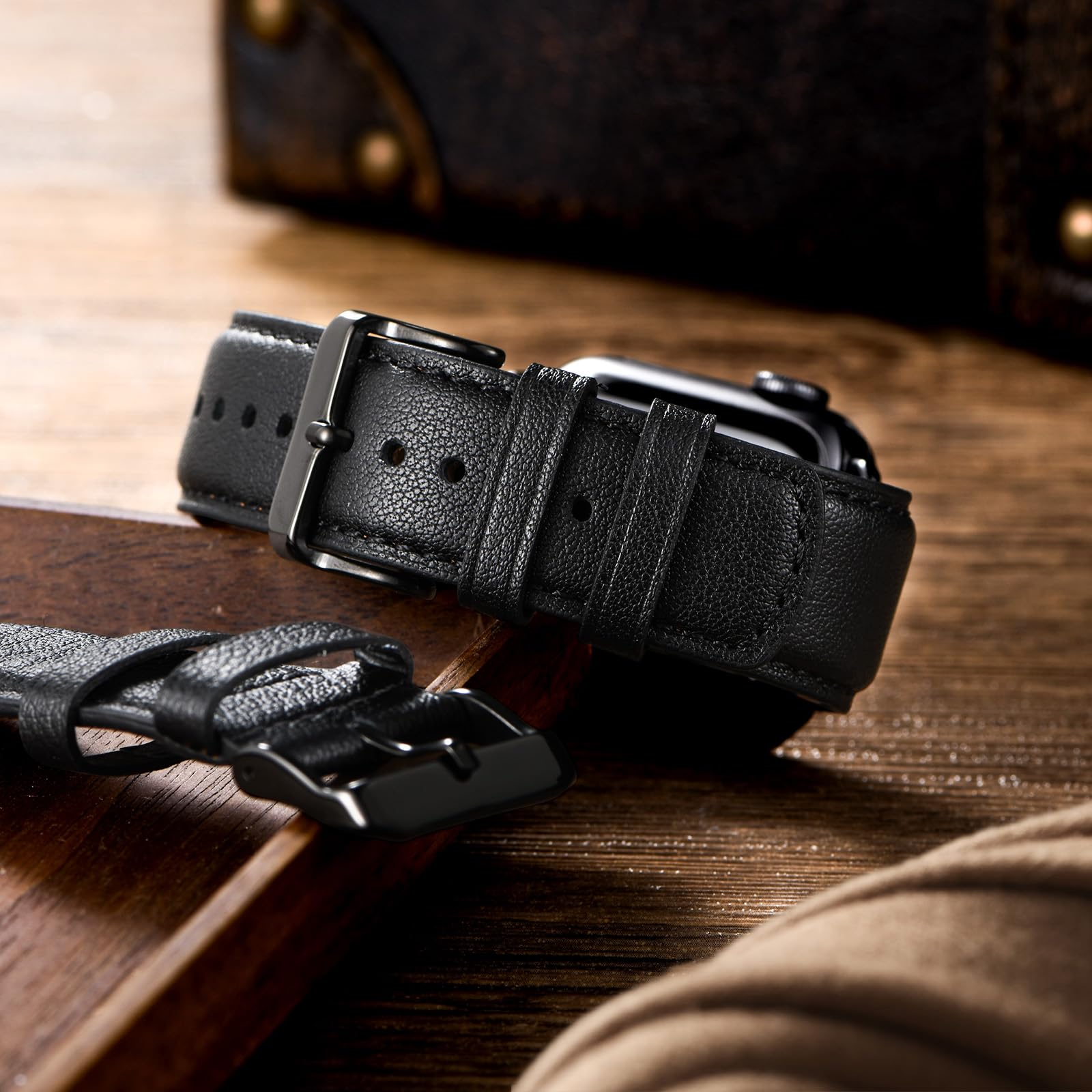 Safe and Sturdy: Our leather apple watch band is built to last, thanks to its high-quality stainless steel buckles and adapters, meticulous stitching, and oil-sealed edges. These features ensure that the band is safe and sturdy, providing long-lasting durability and exceptional quality
