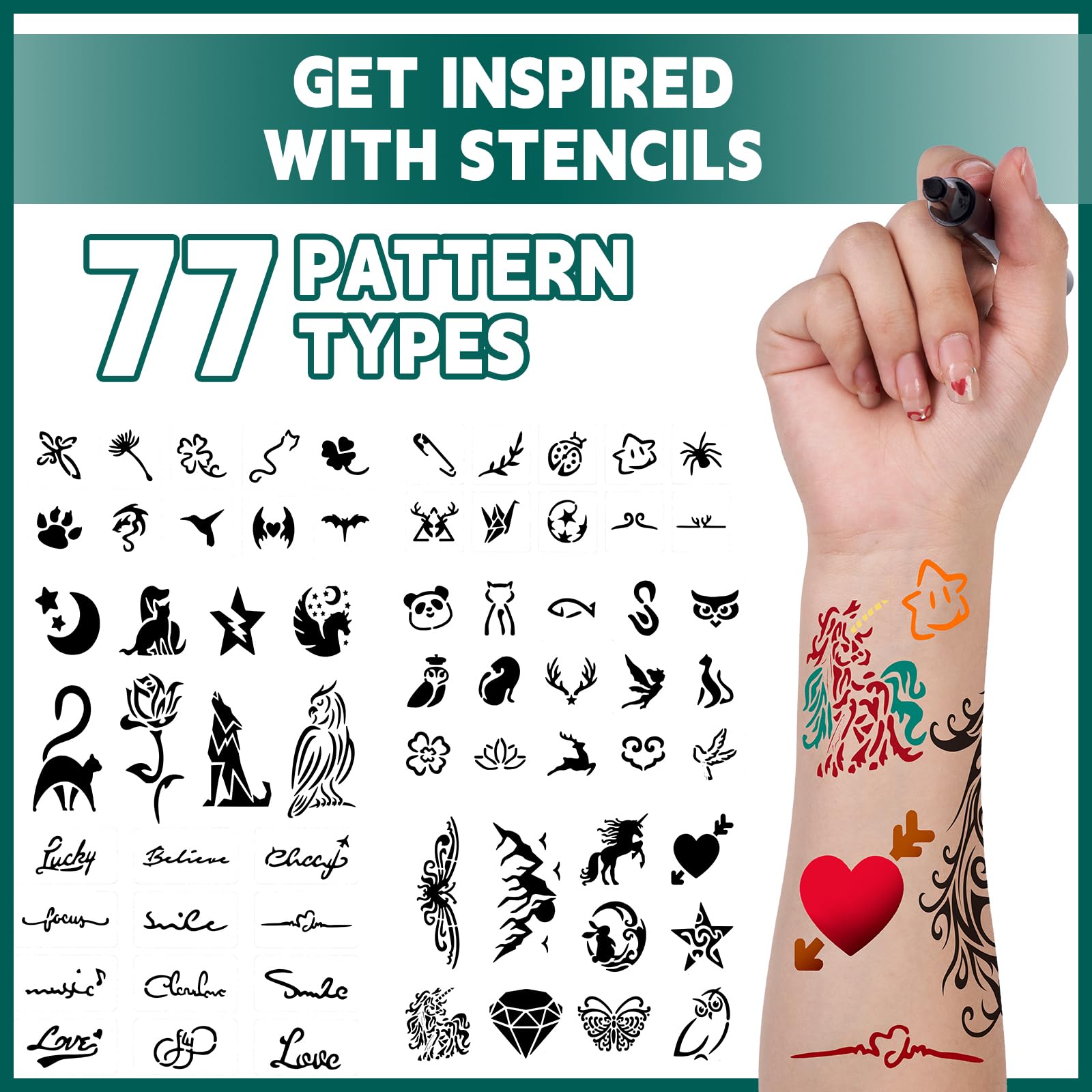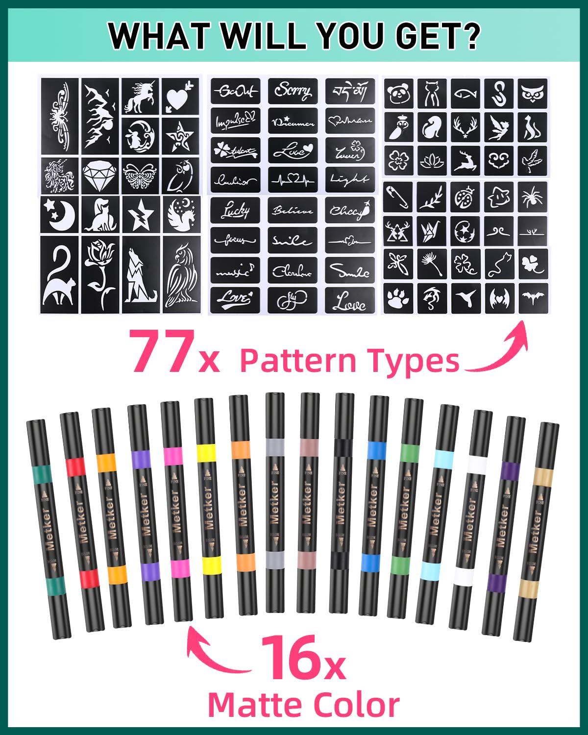 Freehand draw Or design your favorite tattoo with Metker tattoo stencils to create distinctive body art that will allow you to show off your creativity for all kinds of festivals and occasions!