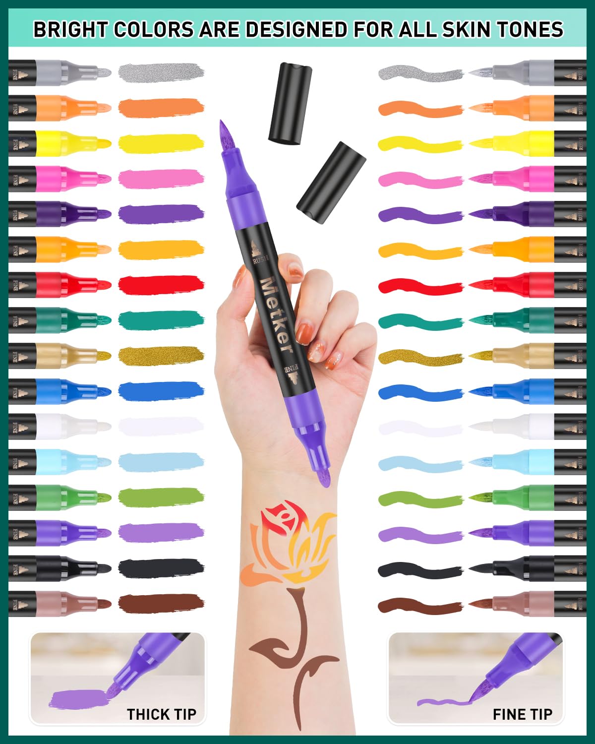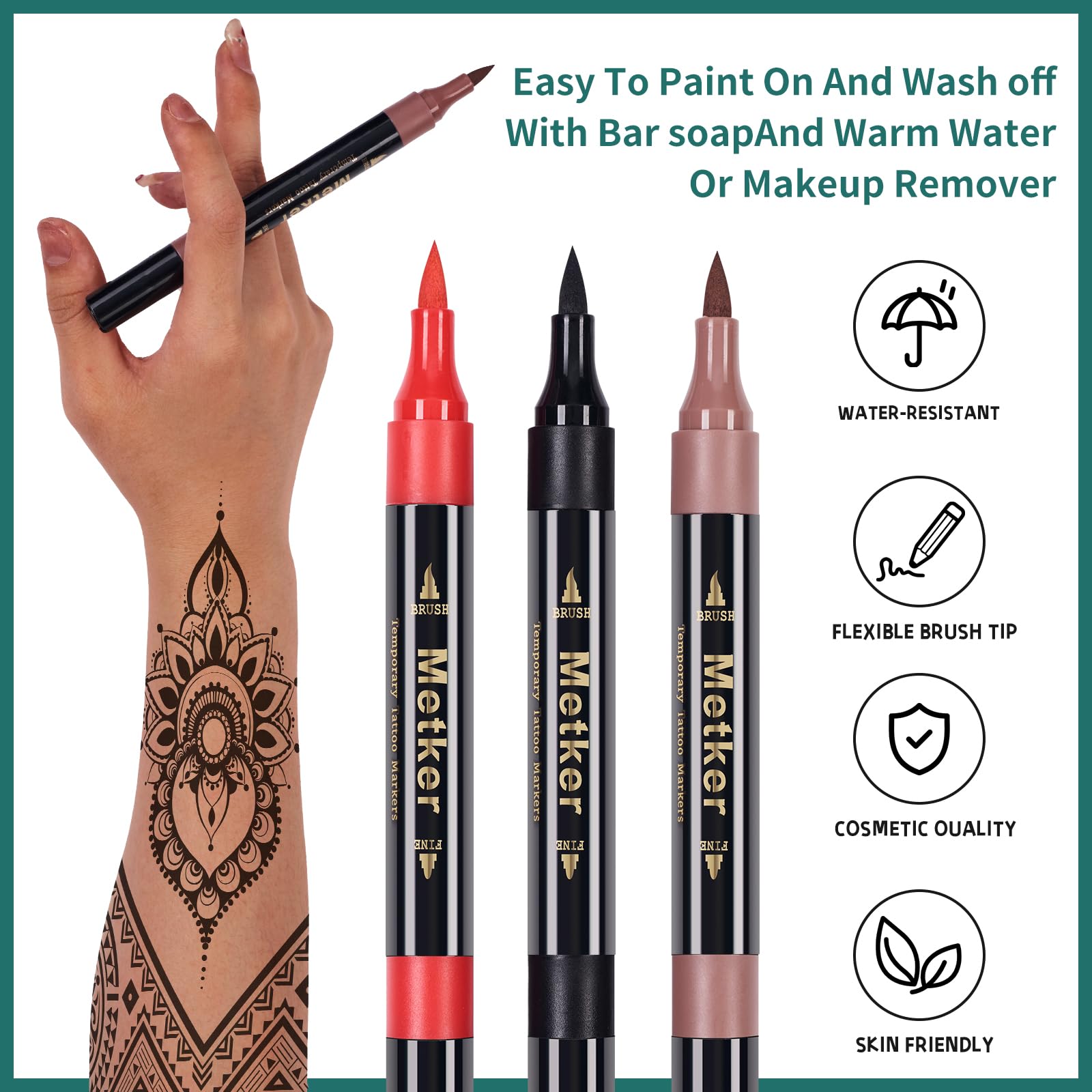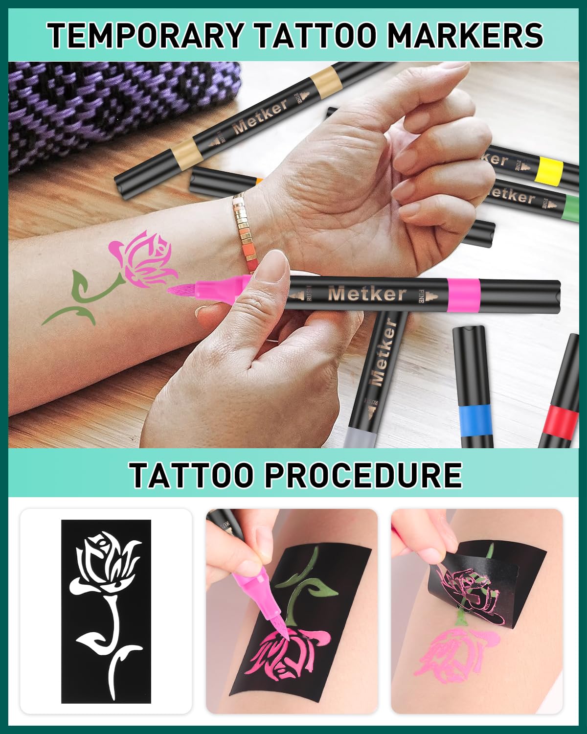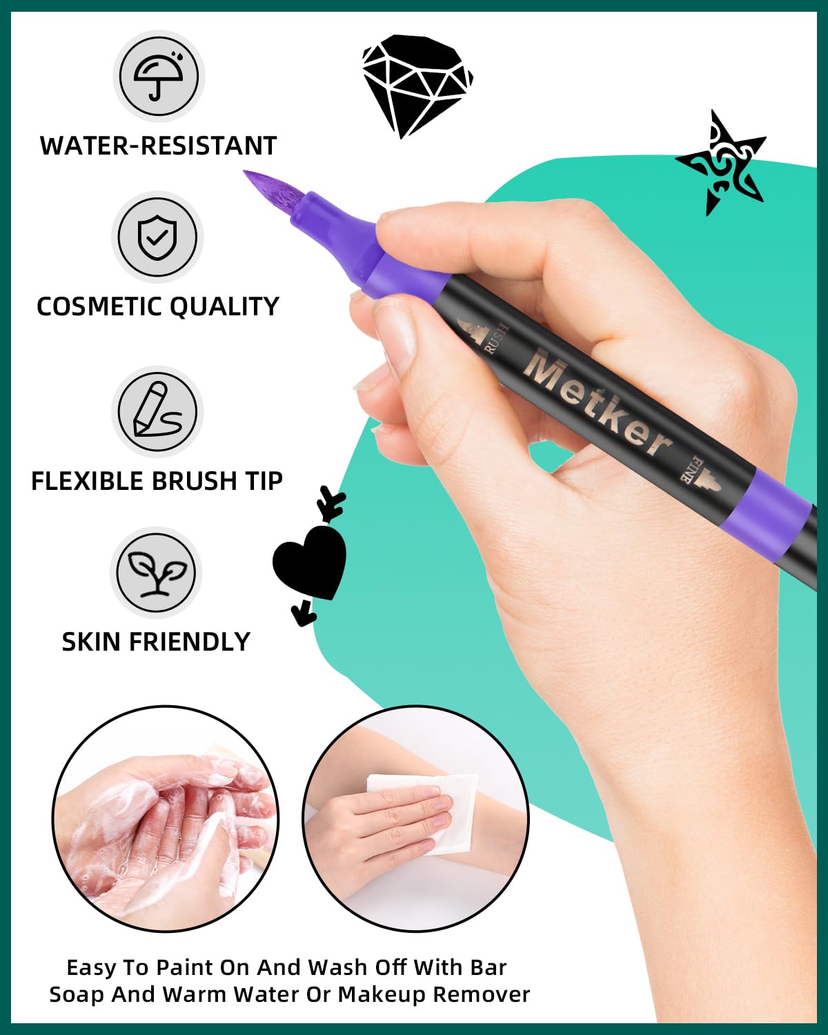 Water resistant and Easy to use: Expressing yourself with temporary skin art is fun and easy with Metker because the ink dries quickly (reducing smudges) and is water resistant