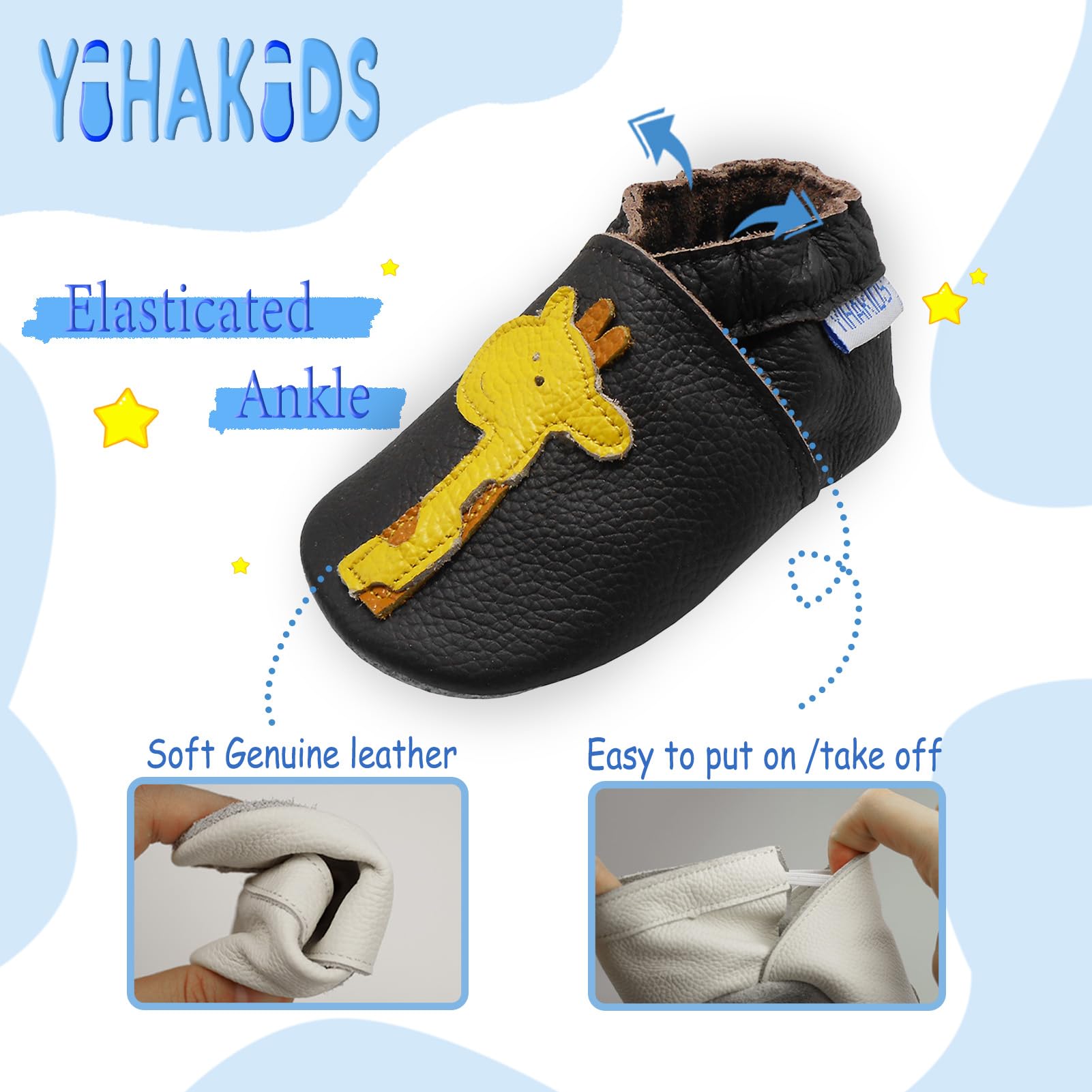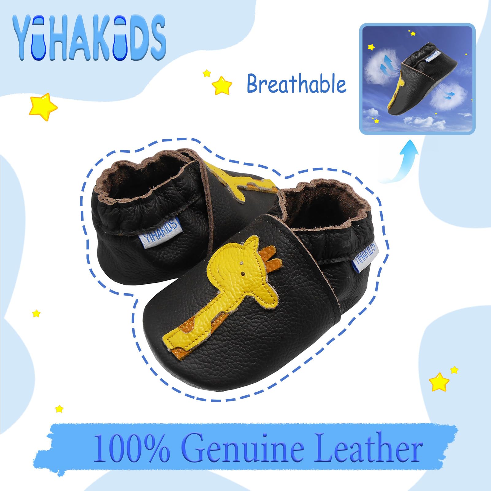 BABY LEATHER SHOES: YIHAKIDS baby moccasins with natural genuine leather, non-slip suede sole.